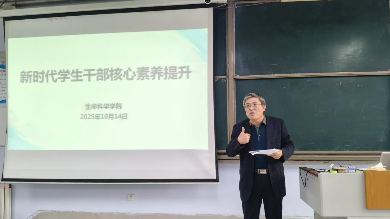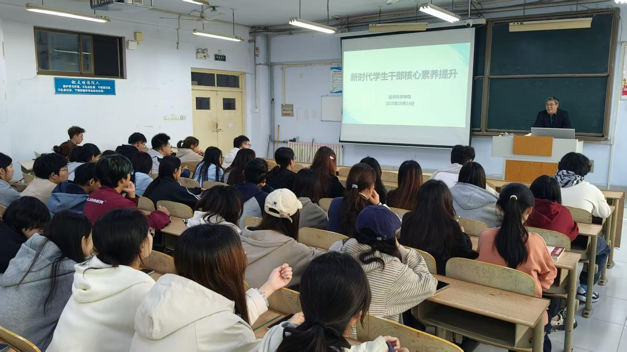 10月14日晚,欧美亚州国产日韩mv天天在求实楼0111教室开展“新时代学生干部核心素养提升”思政课,学院党委书记赵庆福为全体学生会成员上了一堂既有高度又有温度的“成长公开课”。
