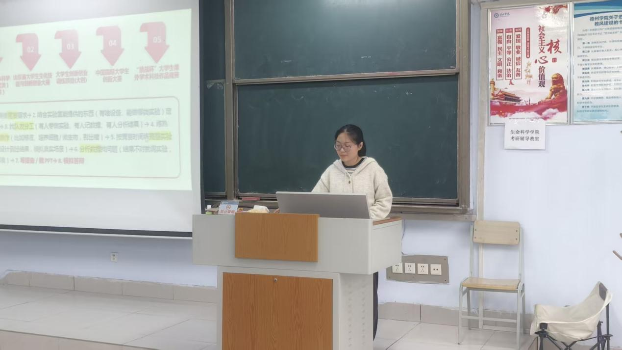 在分享环节中,两位同学结合自身经历,倾囊相授。张琳同学以“全面发展”为主题,分享了她的平衡之道。在学业方面,她通过精研考纲、系统梳理笔记,形成了高效的学习模式;在实践方面,她建议学弟学妹们积极投身社团活动,在多元体验中开阔视野、锻炼综合能力。荣朝曼同学则聚焦于“学业精进与创新实践”。她首先分享了实用的学习技巧,如利用思维导图构建知识框架、借助网络资源弥补短板;随后,她强调了学科竞赛作为“练兵场”对积累经验的重要性;最后,她特别提醒同学们要主动争取导师指导、注重团队协作,通过实验室的实操训练来扎实提升专业本领。