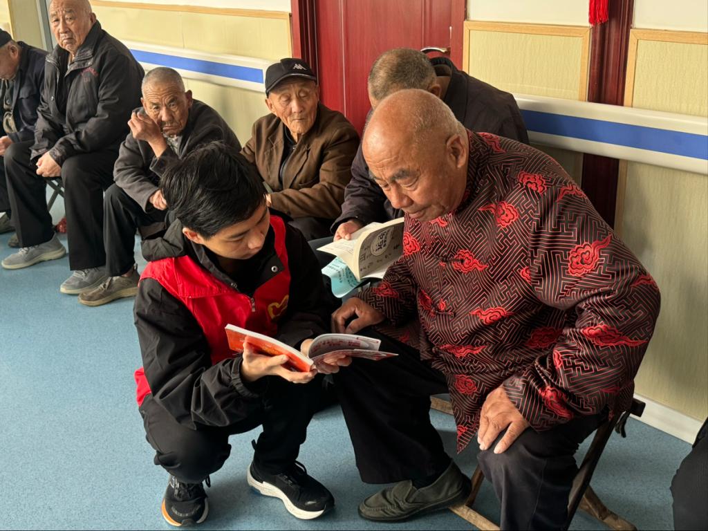 活动现场,健康关怀环节率先展开。志愿者聚焦老年人常见慢性病预防,用通俗易懂的语言讲解健康知识,避开专业术语的晦涩;针对老人普遍提及的关节疼痛、睡眠不佳等问题,志愿者们现场示范简单易操作的按摩手法与养生操,耐心地一对一指导老人练习,温馨融洽的氛围感染着在场每个人。随后,德城区图书馆携养生、文史类精选书籍,志愿者化身“银龄朗读者”伴老人共读,书香暖意交织,现场氛围愉悦。活动尾声,志愿者为每位参与活动的老人送上艾草锤。递礼的同时,他们主动与老人们拉家常、话近况,关切询问日常饮食与生活需求,用唠嗑式的暖心交流,让这份关怀从“送到手”变成“暖到心”,为整场活动画上了温情的句号。