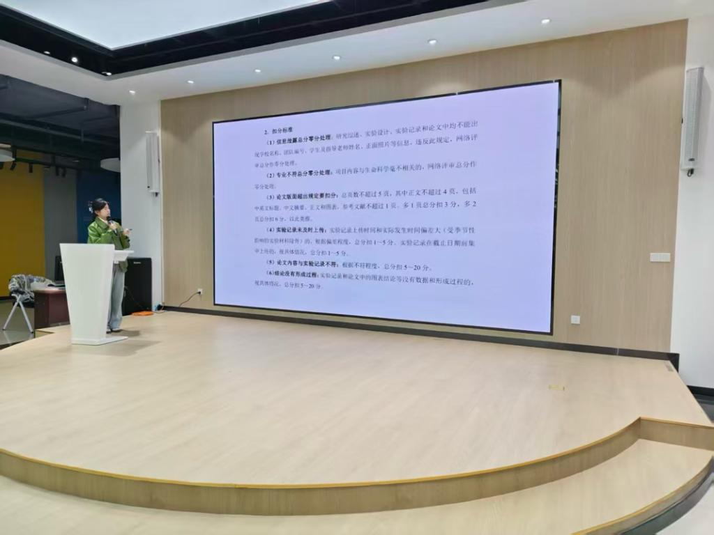 分享环节中,演讲者以“创新驱动,创业筑梦”为核心,从参赛价值切入,深入剖析了创新创业大赛对个人专业成长、实践能力提升及职业发展的重要意义。在赛事流程问题,特别聚焦全国大学生生命科学竞赛的双赛道并行机制——科学探究类赛道侧重基础研究与实验创新,创新创业类赛道聚焦成果转化与市场应用,通过实例对比清晰呈现了两类赛道的核心差异与备赛侧重点。结合自身备赛与参赛经历,演讲者分享了从选择实验室到了解比赛到准备申报书及答辩PPT最后到收尾工作的全流程实战经验,同时针对赛道选择、资源整合、细节避坑等同学们关心的问题提供了具体建议。