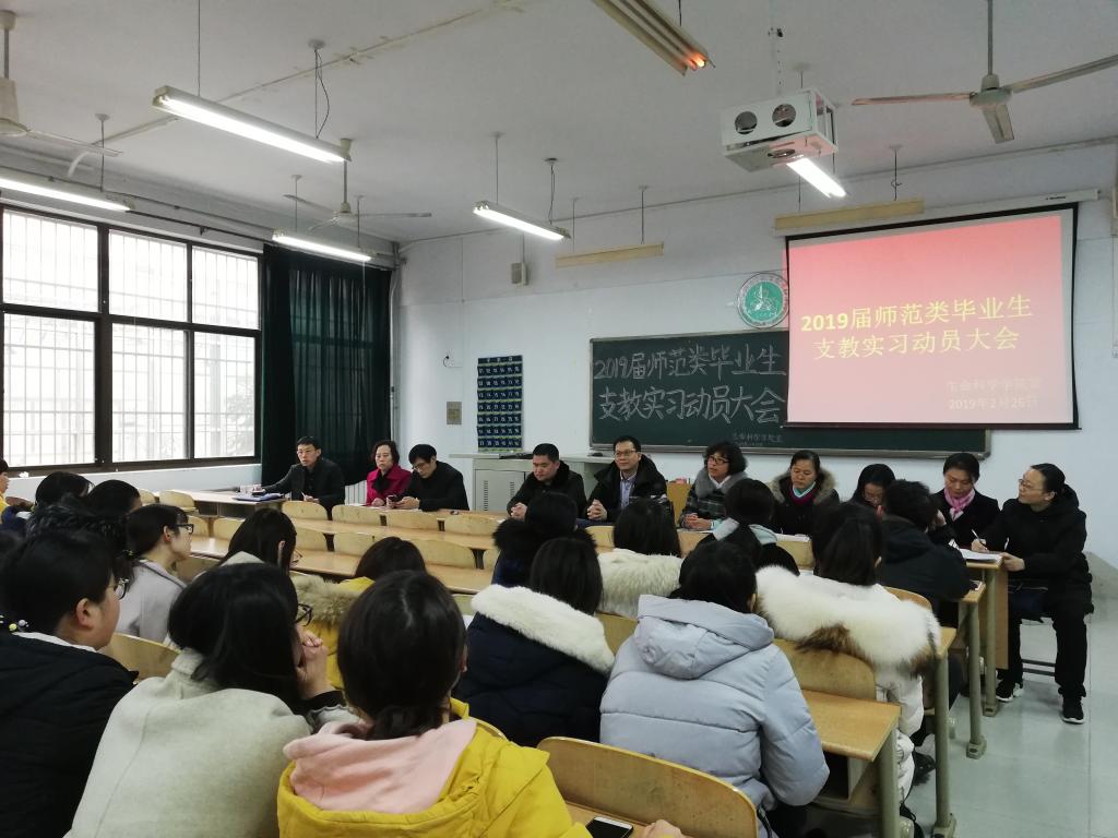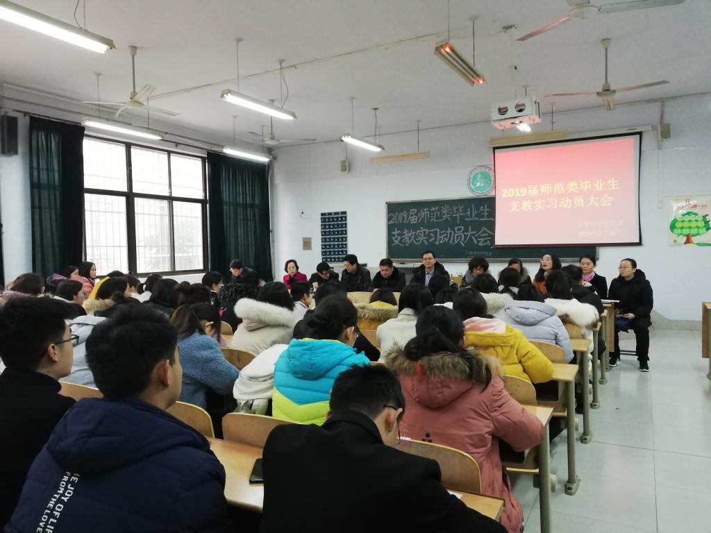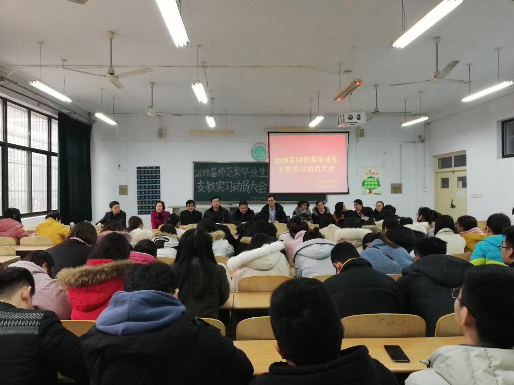 2019年2月26日下午,欧美亚州国产日韩mv天天在求实楼1007教室顺利召开2019届师范类毕业生支教实习动员大会。出席本次大会的有院长曾强成、副院长王丽燕、支教带队老师及2015级师范类全体成员。