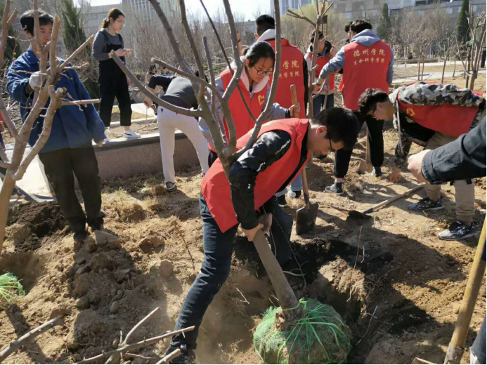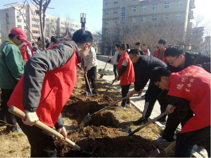 3月13日,欧美亚州国产日韩mv天天组织青年教职工和学生志愿者在学校求索园开展义务植树活动,四十余名师生参加了此次植树活动。