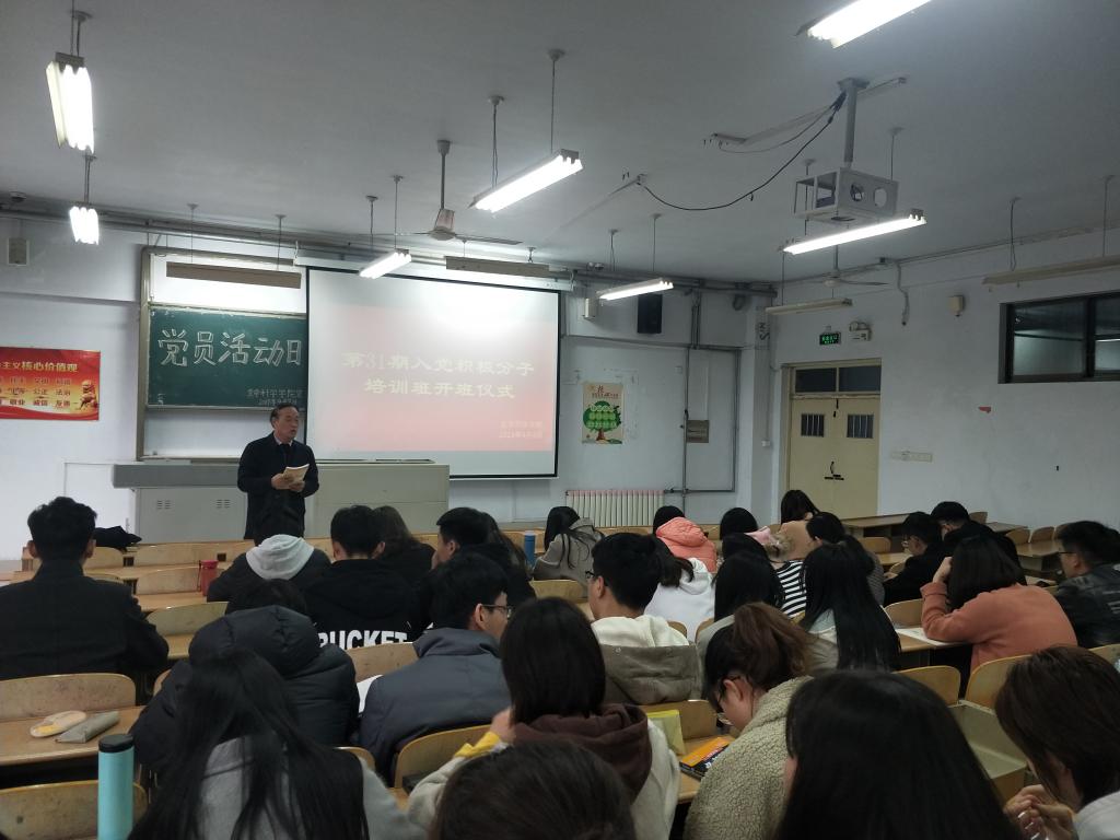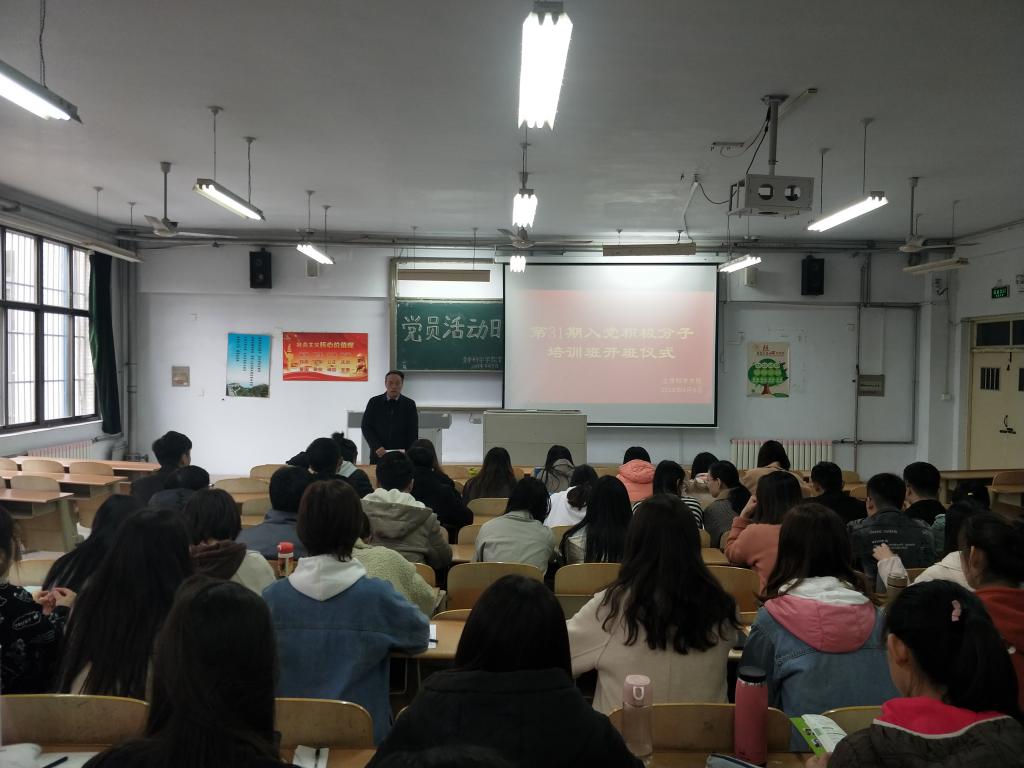 为学习贯彻习近平新时代中国特色社会主义思想和党的十九大精神,不断提高入党积极分子的思想政治素质和政治理论水平,2019年4月9日下午,欧美亚州国产日韩mv天天在求实楼1012教室举行第31期入党积极分子培训班开班仪式。此次开班仪式由欧美亚州国产日韩mv天天党总支书记焦德杰主持召开,欧美亚州国产日韩mv天天党员、预备党员、入党积极分子参加了此次开班仪式。