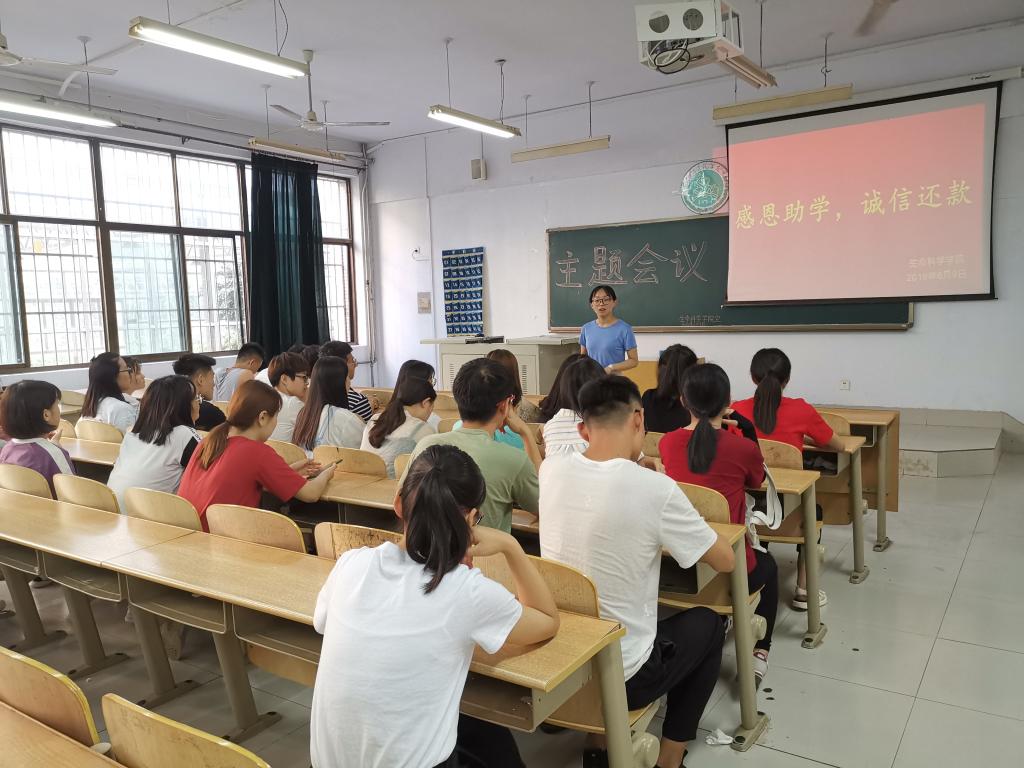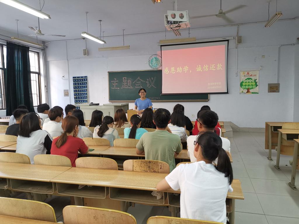 为了增强大学生的诚信意识,培养广大贷款学生的感恩精神,加深同学们对诚信还款的认识。欧美亚州国产日韩mv天天于6月9日在求实楼1007教室开展了以“感恩助学,诚信还款”为主题的教育活动。
