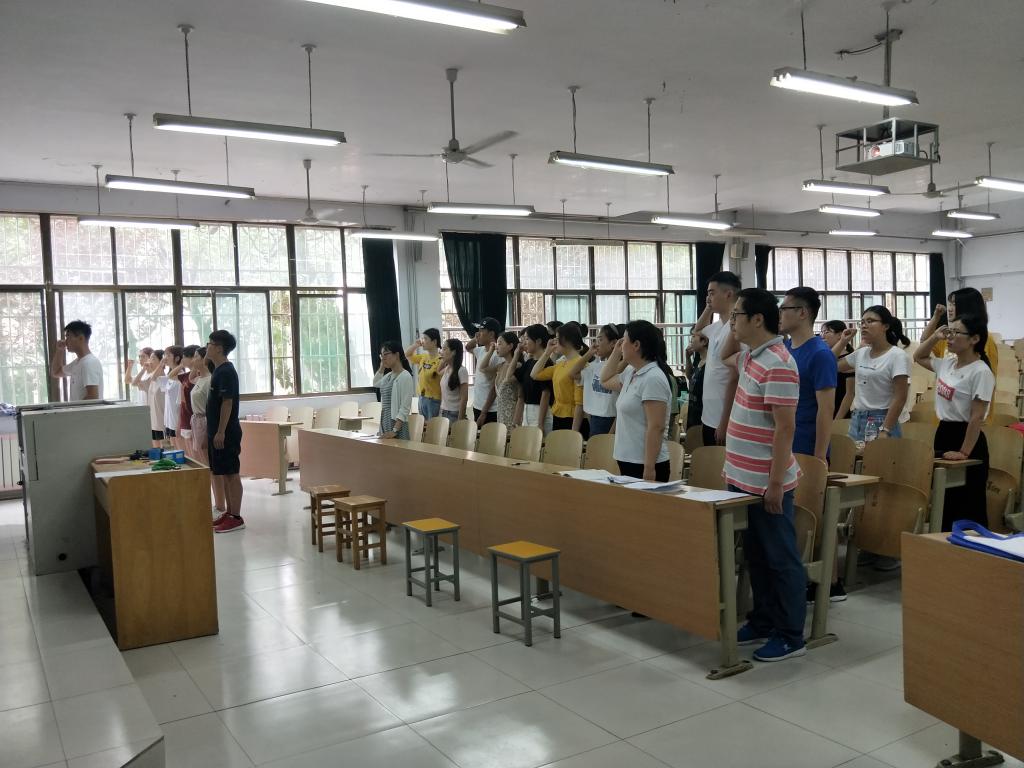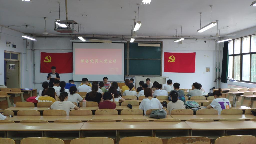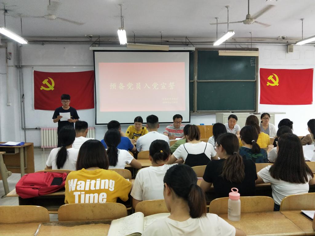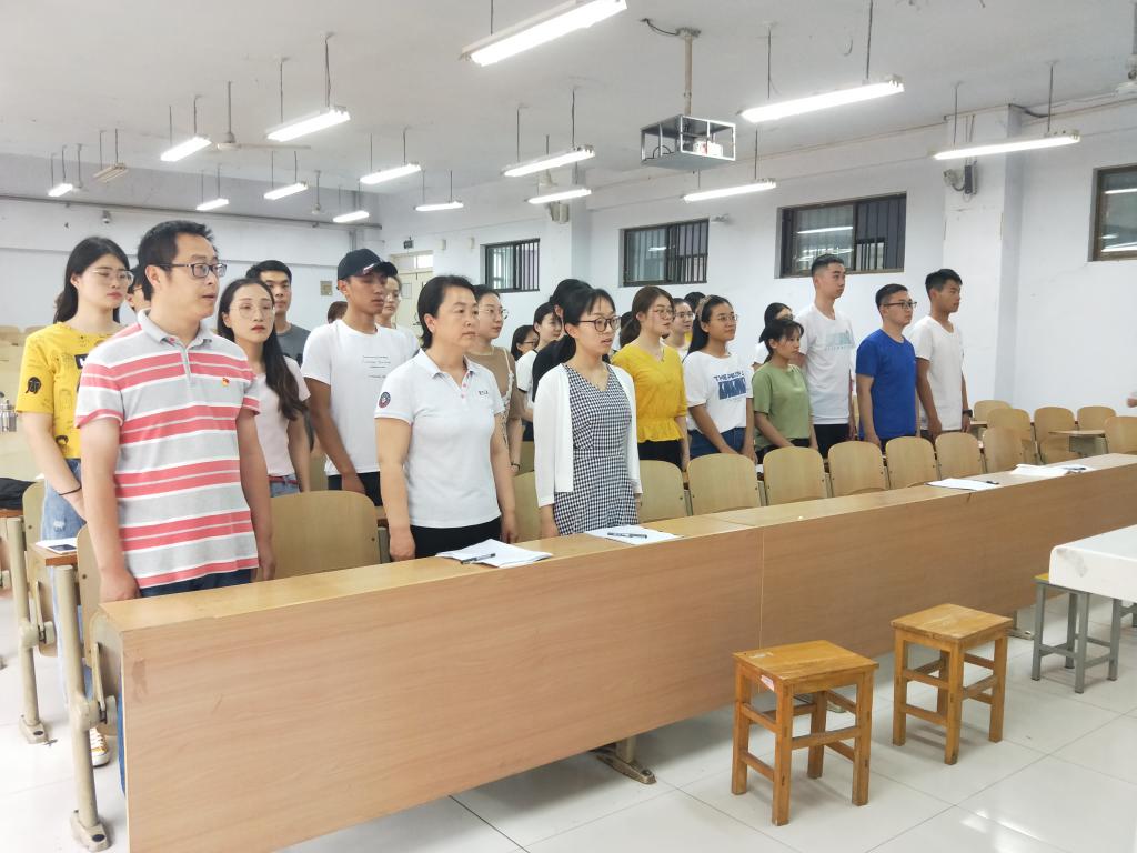2019年6月20日下午,欧美亚州国产日韩mv天天于求实楼1011教室召开预备党员入党宣誓大会。欧美亚州国产日韩mv天天党总支副书记夏书珍、辅导员周向军、郑金召参加了此次大会。2019年上半年发展的预备党员参加了此次会议。此次宣誓仪式由辅导员郑金召主持。