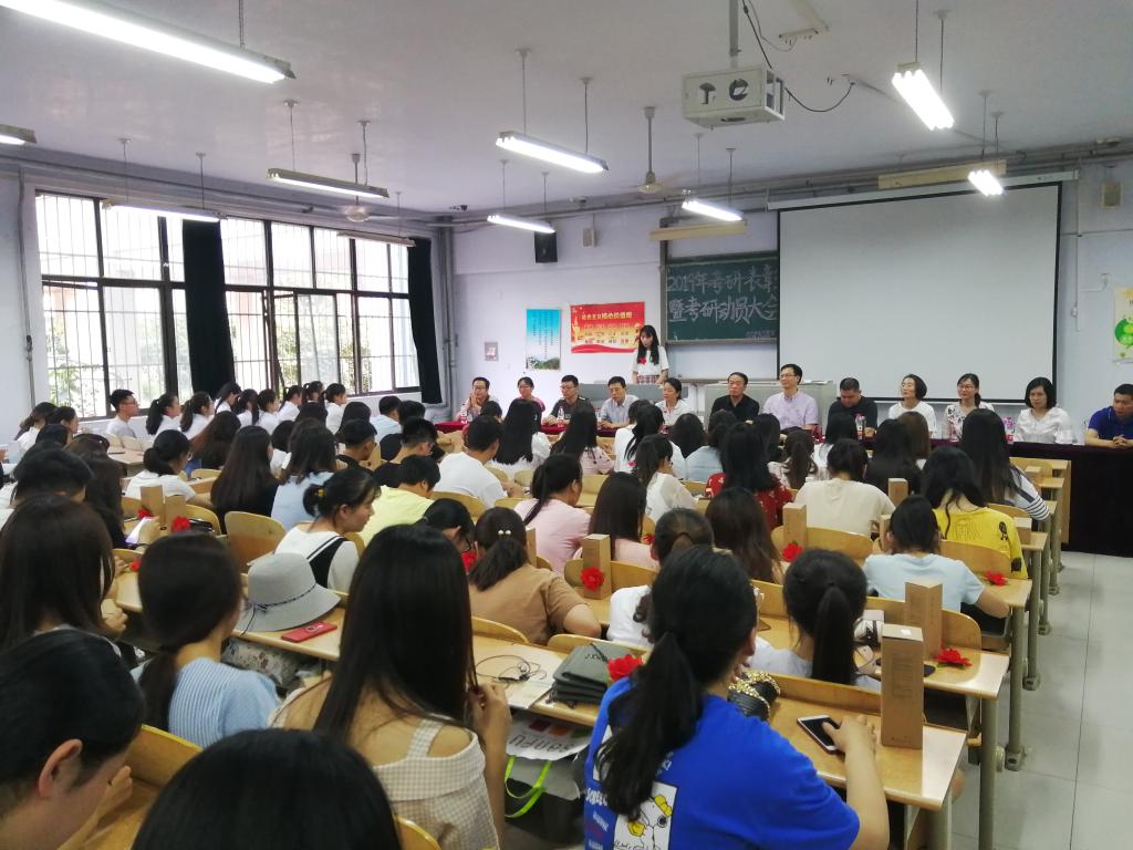 欧美亚州国产日韩mv天天2019届同学不负众望,在今年的考试中取得了骄人的成绩。为祝贺2019届同学取得优异成绩,同时提高同学们考研学习的积极性和热情,特此,欧美亚州国产日韩mv天天于2019年6月24日在求实楼1012召开2019年考研表彰暨考研动员大会。出席本次大会的有欧美亚州国产日韩mv天天领导班子成员、办公室主任、系主任、辅导员和2019届考取研究生的同学代表、2020届学生代表。大会由党总支副书记夏书珍主持。