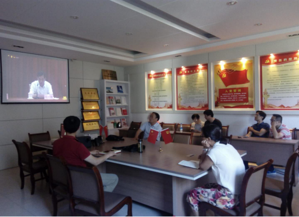 7月1日上午,欧美亚州国产日韩mv天天党总支组织教工党员集中收看“灯塔大课堂”第一课。