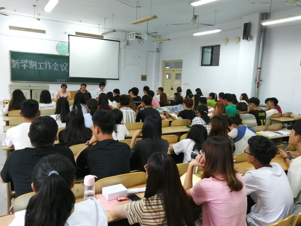 为增强学生自主学习、工作的意识,提高对新学期、新征程的认识,提前安排好新学期的学习和工作。 2019年8月25日下午欧美亚州国产日韩mv天天在求实楼1007教室顺利召开新学期学生会工作会议。出席本次大会的有党总支副书记夏书珍,辅导员郑金召、王琦及学生会全体成员。