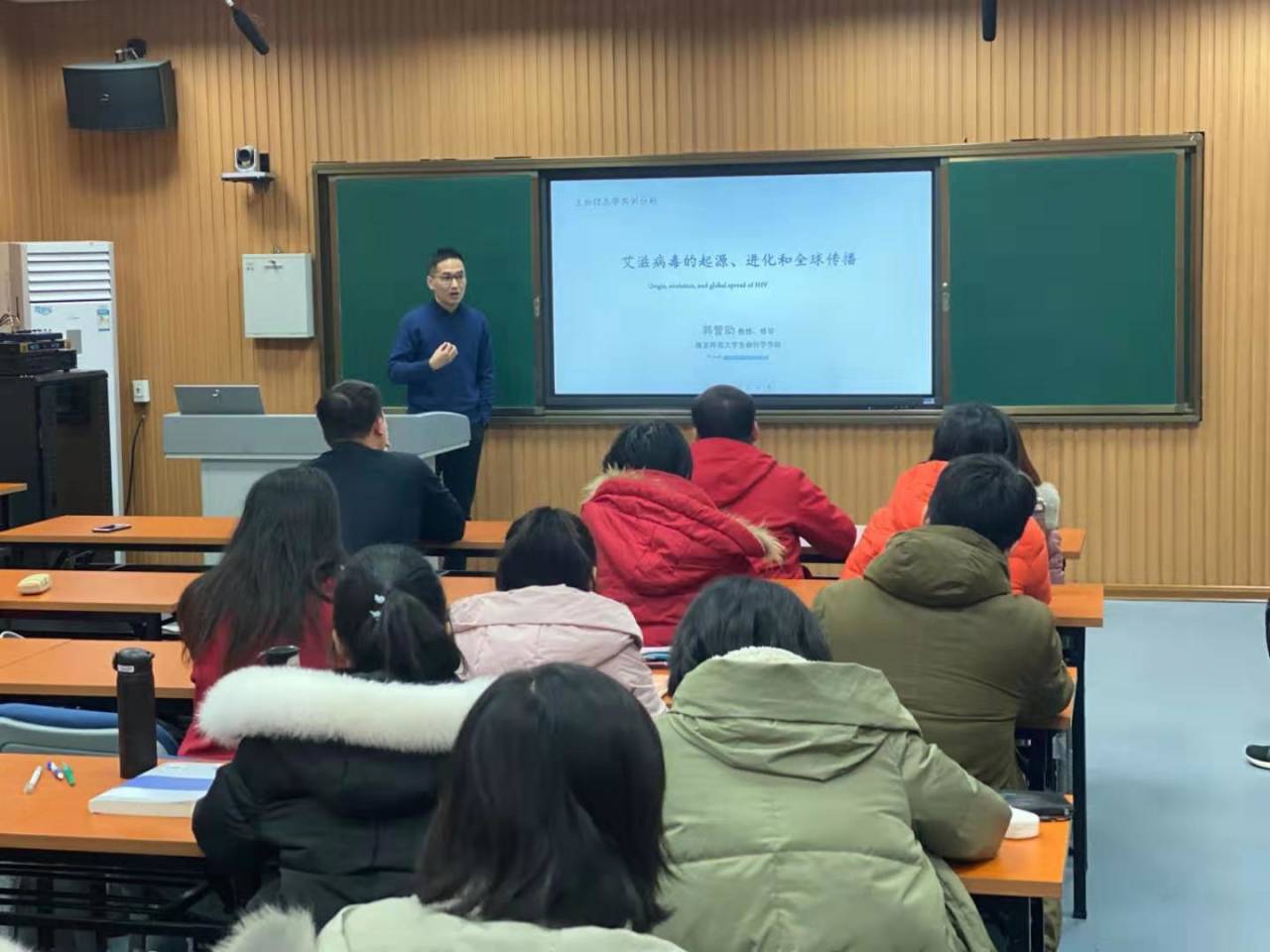 韩管助教授作题为《生物信息学分析实例:艾滋病毒的起源、进化和全球传播》的学术报告,报告围绕艾滋病毒的类型、传播方式、系统发育分析以及全球分布情况展开。孙亮副研究员作题为《生物信息学在科研与现实应用中的作用》的学术报告,报告围绕生物信息学的研究内容、生物信息学与生命多组学、生命多组学研究推动医学科研的发展以及生物信息学的未来应用前景和场景等方面展开。徐松副研究员作题为《生物信息学在微生物生态环境中的发展和应用研究》的学术报告,报告围绕生物信息学在微生物研究的应用、极端环境微生物的研究内容等方面展开。报告结束后,三位专家与老师和同学们进行了热烈的学术讨论,并对欧美亚州国产日韩mv天天、山东省功能性生物资源开发与利用高校重点实验室发展给出了指导性意见和建议,对推动欧美亚州国产日韩mv天天人才培养和高校重点实验室的发展,发挥积极的作用。