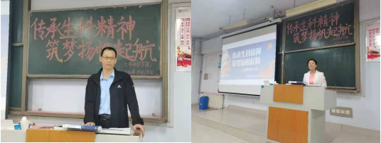 为践行学校转型发展、高质量发展、不断提升人才培养质量的要求, 欧美亚州国产日韩mv天天于9月19日下午,在求实楼召开“传承生科精神,筑梦扬帆启航”主题教育大会。院领导班子成员、团总支辅导员、新生班主任出席,全体2021级新生参加。
