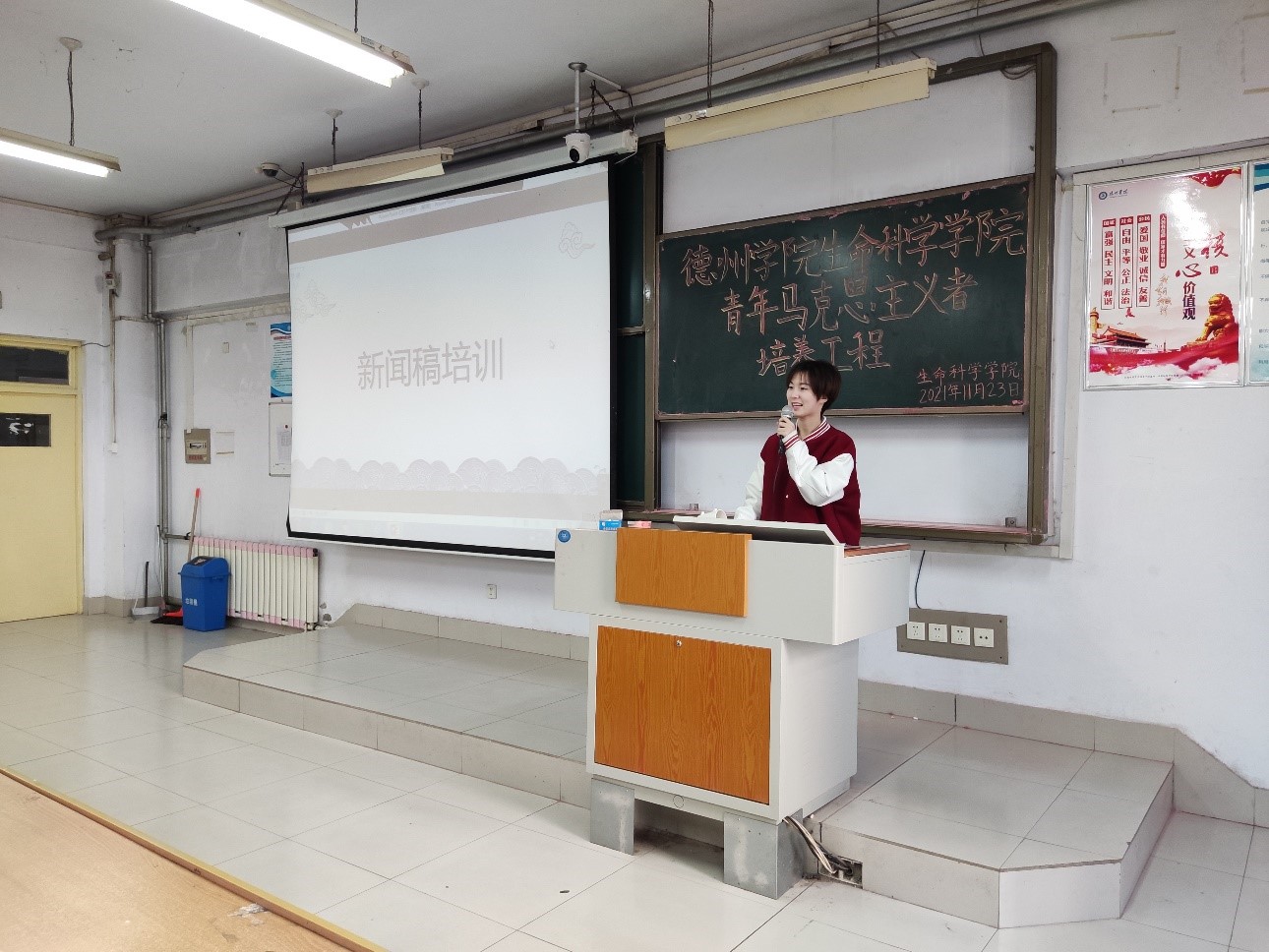 为加强青马班成员撰写新闻稿的能力,提高新闻稿质量,欧美亚州国产日韩mv天天于2021年11月23日组织青马班全体成员在求实楼0111教室进行新闻稿培训。