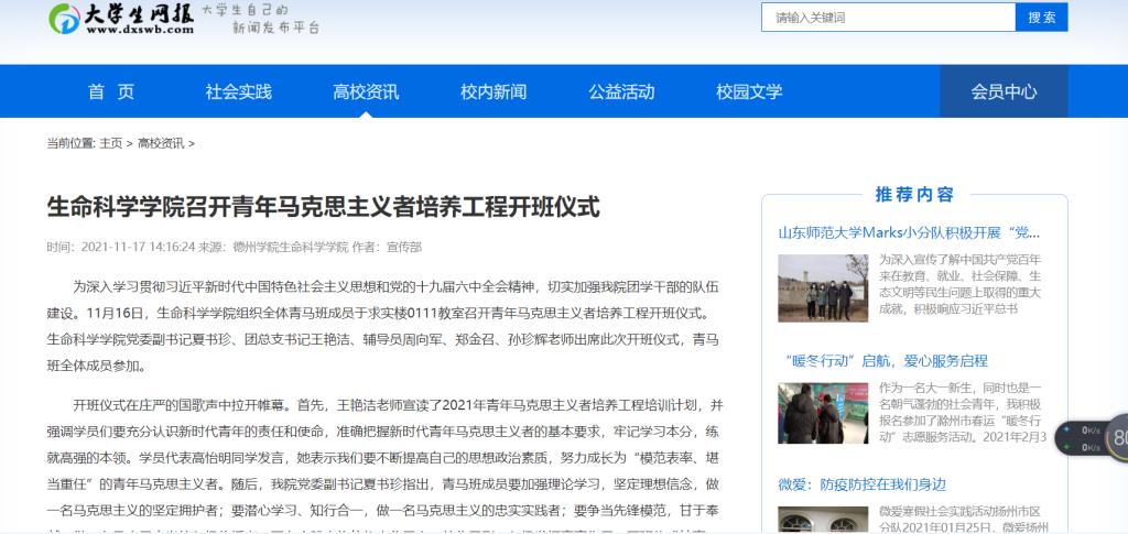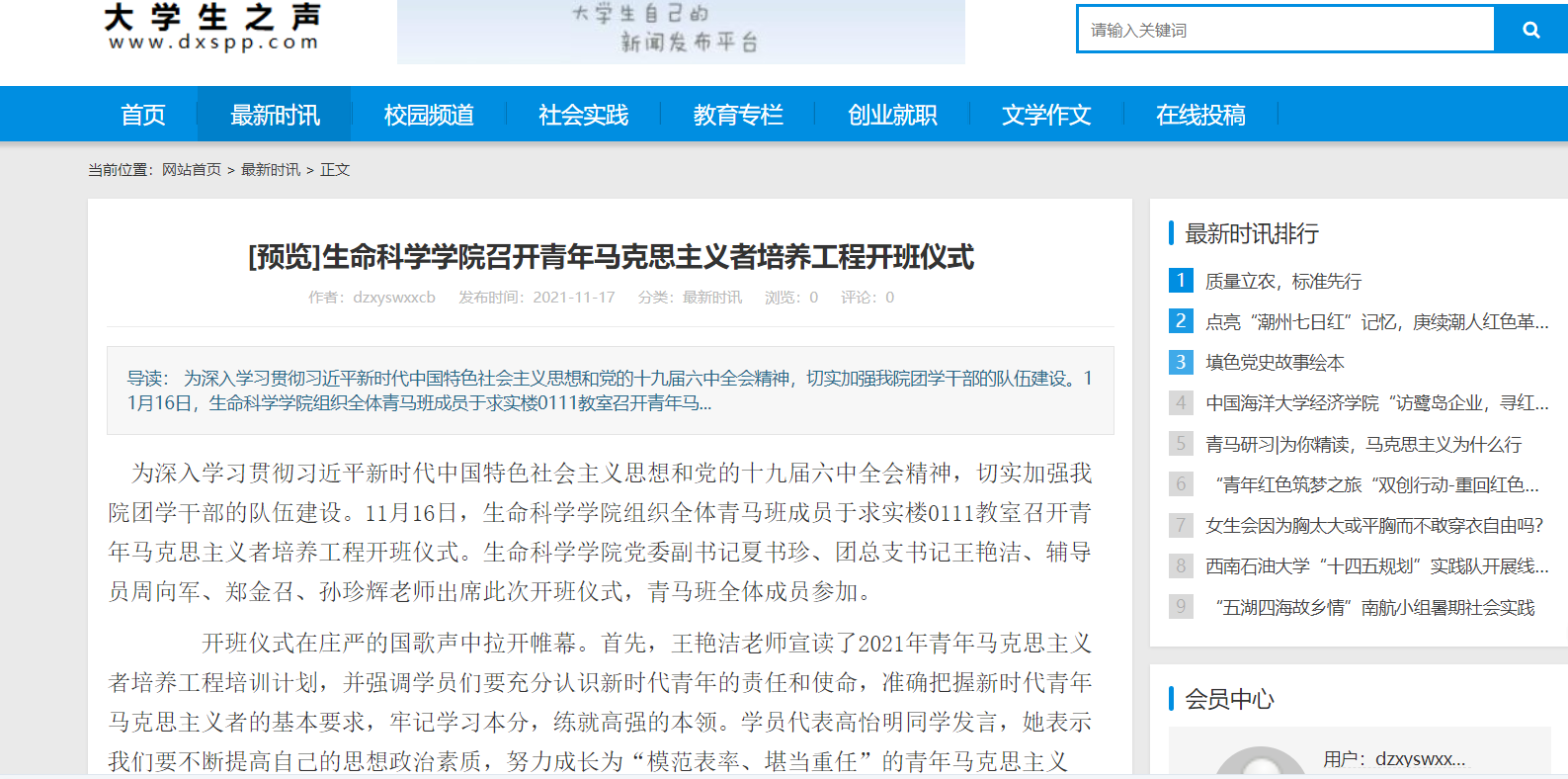 为深入学习贯彻习近平新时代中国特色社会主义思想和党的十九届六中全会精神,切实加强我院团学干部的队伍建设。11月16日,欧美亚州国产日韩mv天天组织全体青马班成员于求实楼0111教室召开青年马克思主义者培养工程开班仪式。欧美亚州国产日韩mv天天党委副书记夏书珍、团总支书记王艳洁、辅导员周向军、郑金召、孙珍辉老师出席此次开班仪式,青马班全体成员参加。
