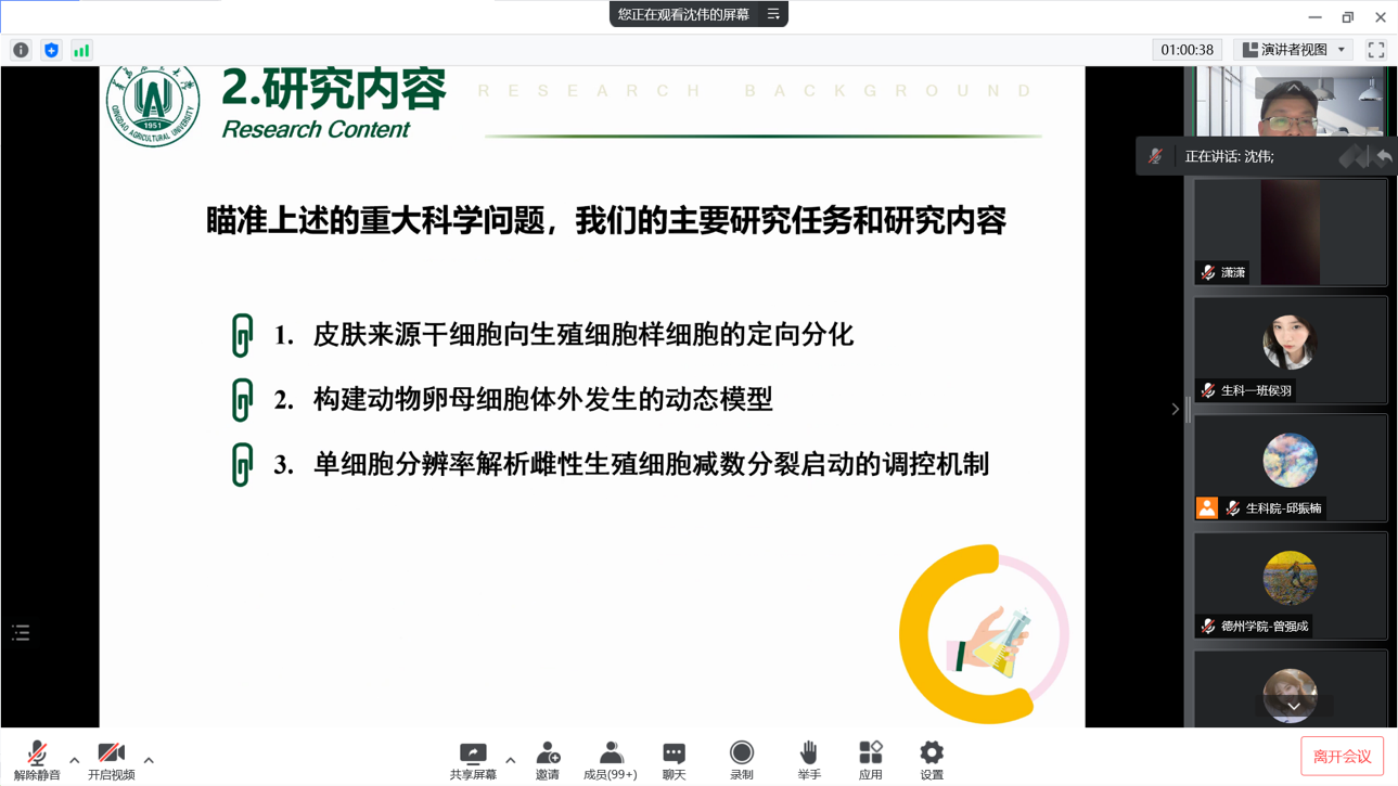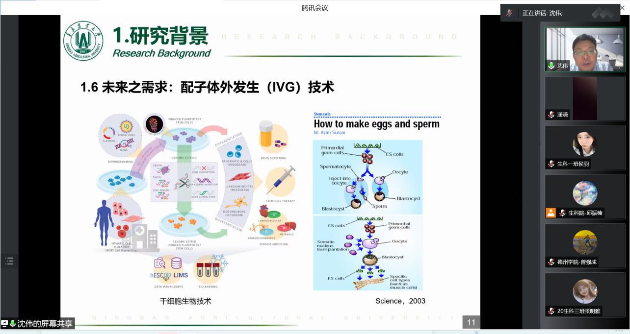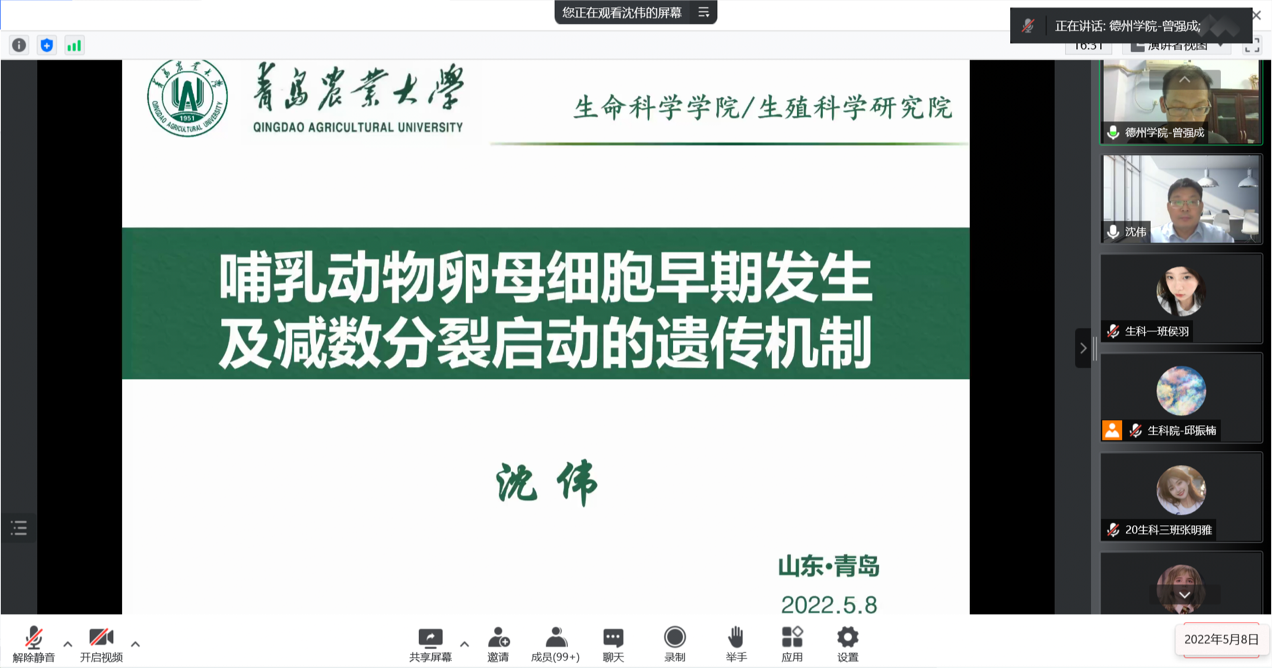 2022年5月8日,欧美亚州国产日韩mv天天、现代生物技术产业学院、生物物理研究院、科研处通过腾讯会议联合开展了德州学院51周年校庆学术讲坛—哺乳动物卵母细胞早期发生及减数分裂启动的遗传机制。青岛农业大学欧美亚州国产日韩mv天天院长沈伟为大家作了专题学术报告,我院院长、专业课老师及20级部分学生参加了此次活动。