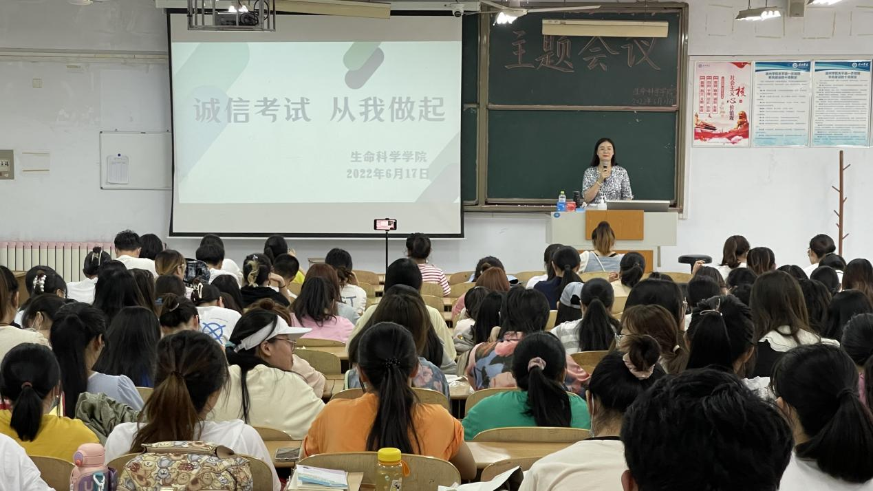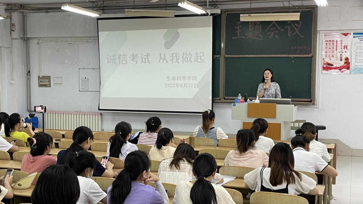 6月15日,为端正同学们的考试态度,严肃考纪考风,营造良好的考试氛围,欧美亚州国产日韩mv天天各年级辅导员、班主任老师于求实楼召开诚信考试主题班会。