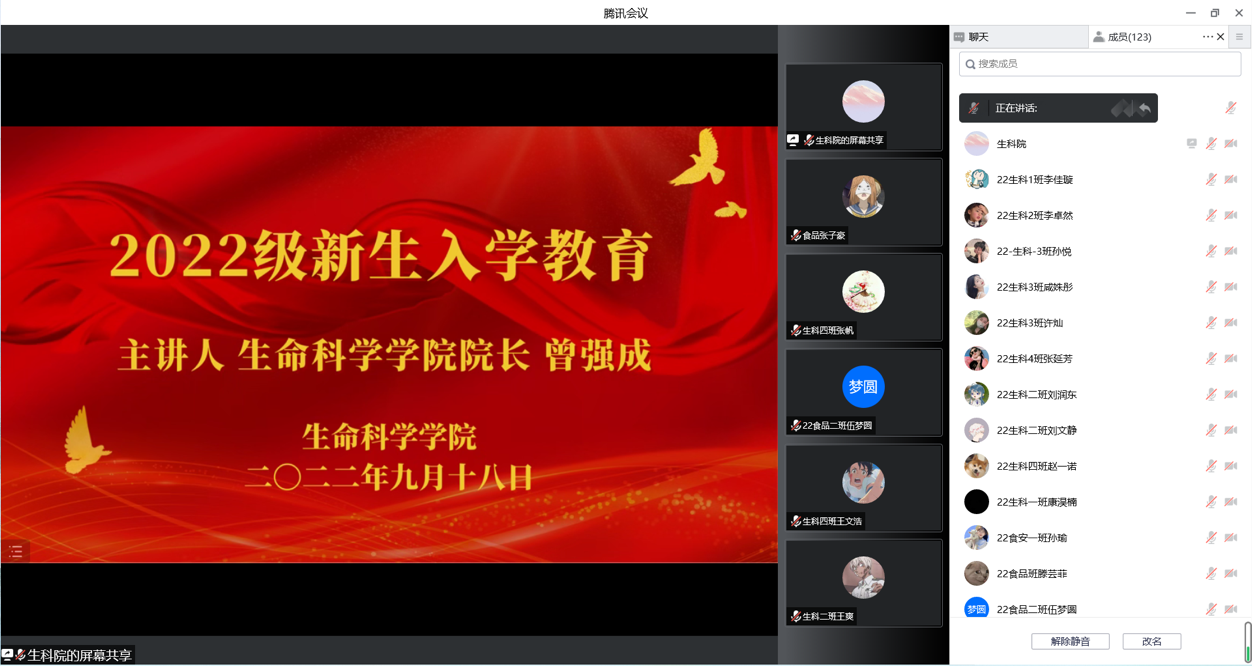 9月18日上午,欧美亚州国产日韩mv天天采用线上线下相结合的方式,为新生开展入学教育。本次会议由院长曾强成主讲。