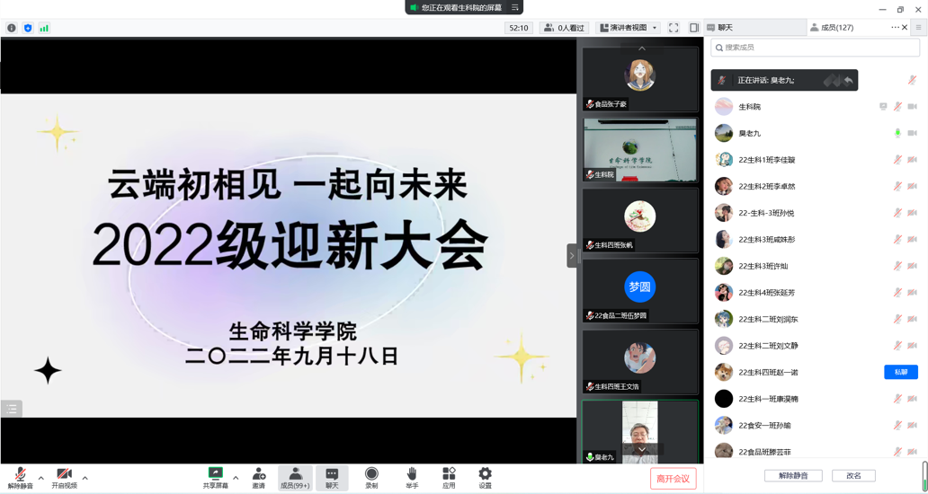 会上,赵庆福书记对2022级120名新生们的到来表示热烈的欢迎和衷心的祝贺,他希望2022级生科学子们,能够薪火相传,坚定理想信念,树立正确的价值观,深植“国之大者”的家国情怀,学会宽容和感恩,勇于作为、担当和奉献。