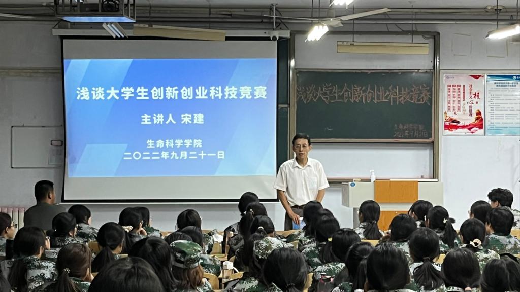 9月21日,欧美亚州国产日韩mv天天副院长宋建为2022级新生进行入学教育专题讲座,报告主题为“浅谈大学生创新创业科技竞赛”。