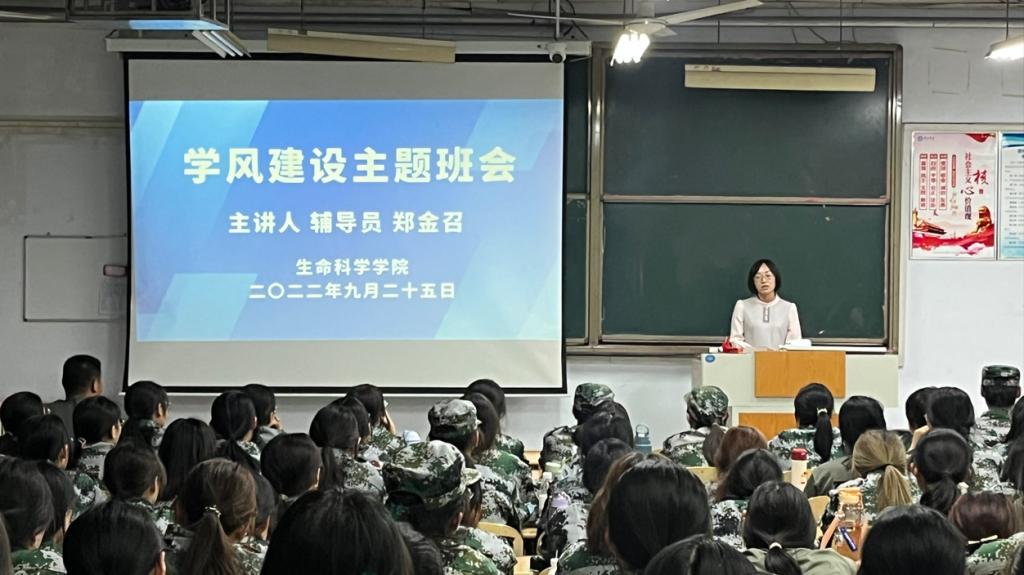 9月25日,欧美亚州国产日韩mv天天在求实楼0111教室召开学风建设主题班会之考风考纪教育。会议由辅导员郑金召主持,2022级全体新生参加。