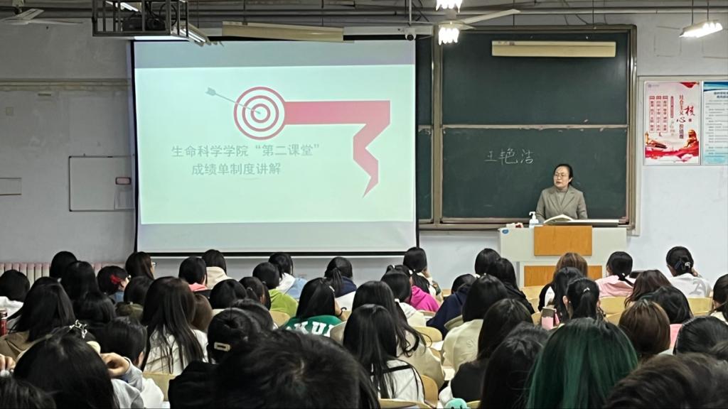 会议伊始,团委书记王艳洁围绕制度的意义及其主要内容进行讲解,并强调了“第二课堂成绩单”毕业学分的基本要求,希望2022级新生围绕“第二课堂成绩单”制度课程项目体系积极参与思想教育、科技竞赛、学术讲座、志愿服务、文体活动、社会实践等各类活动,不断提升自身综合素质,充实大学生活。