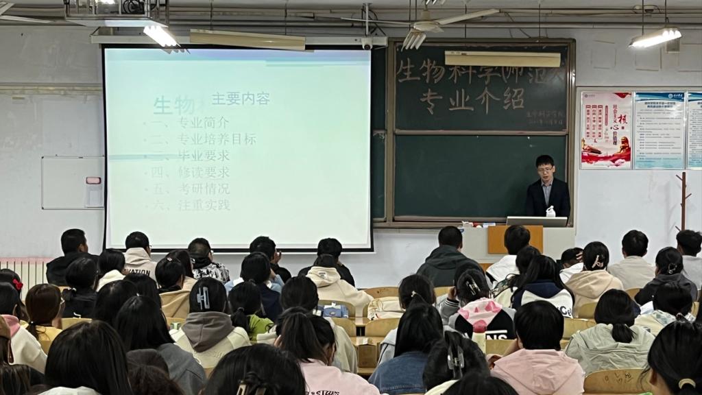 10月5日晚,我院生科专业副系主任张培亮于求实楼0111教室开展新生入学教育之生物科学(师范类)专业介绍。