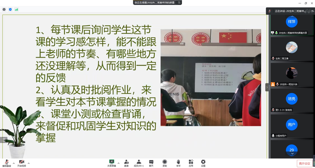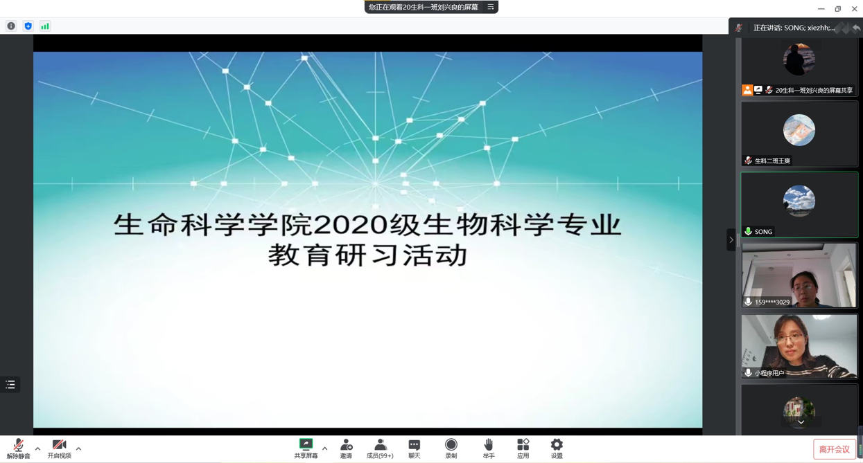 11月19日,为更好地总结支教实习工作,激发师范生从教热情,我院通过腾讯会议开展线上2020级生物科学专业教育研习活动。本次研习邀请了北京八中·崇德中学申晶晶老师和德州市实验中学吴艳菊老师。