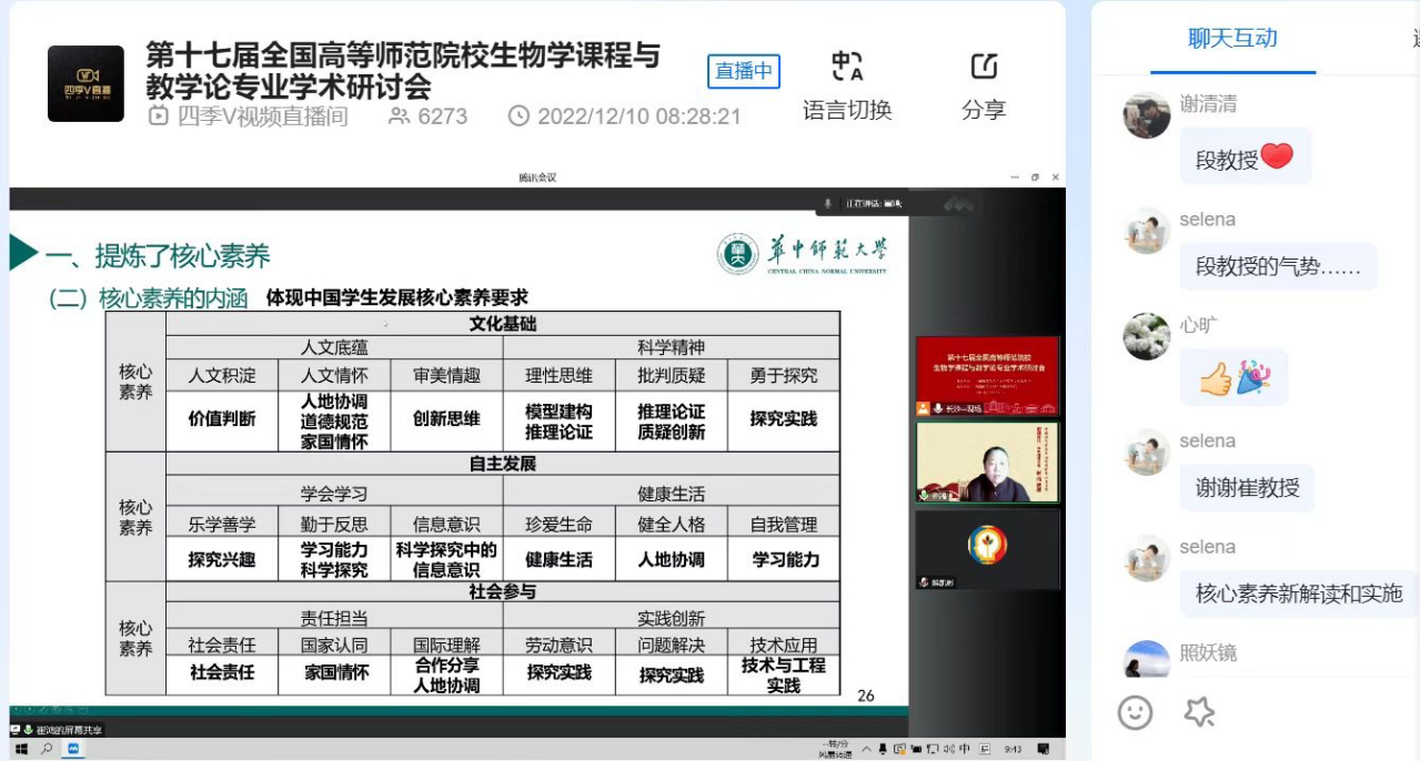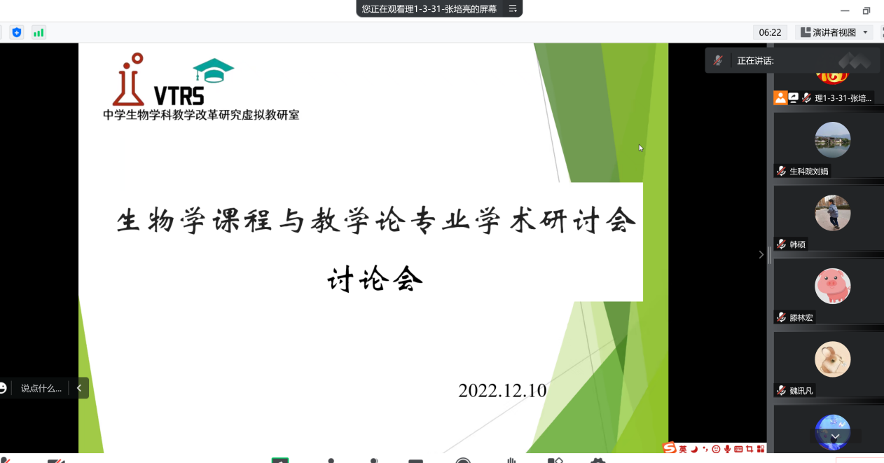 12月10日,欧美亚州国产日韩mv天天组织教师参加第十七届全国高等师范院校生物学课程与教学论专业学术研讨会。本次研讨会由中国教育学会生物学教学专业委员会主办,湖南师范大学欧美亚州国产日韩mv天天承办。