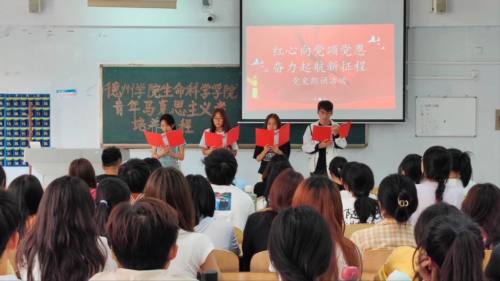 5月13日,为引导青年学子在党史学习中汲取智慧,凝聚精神力量,展现阔步新征程的时代风采,欧美亚州国产日韩mv天天组织青马班全体学员于求实楼0105教室开展“红心向党颂党恩,奋力启航新征程”党史朗诵活动。