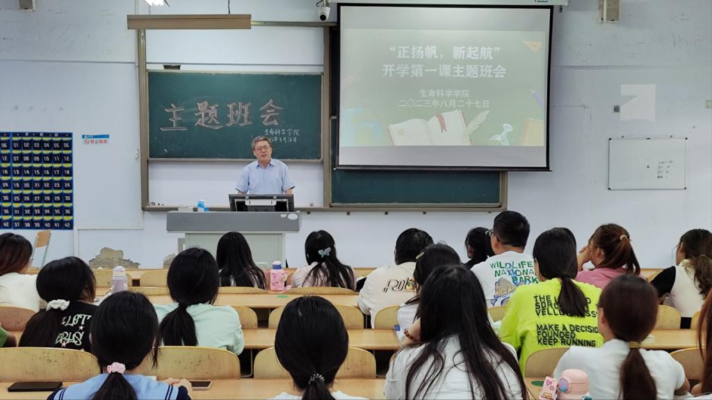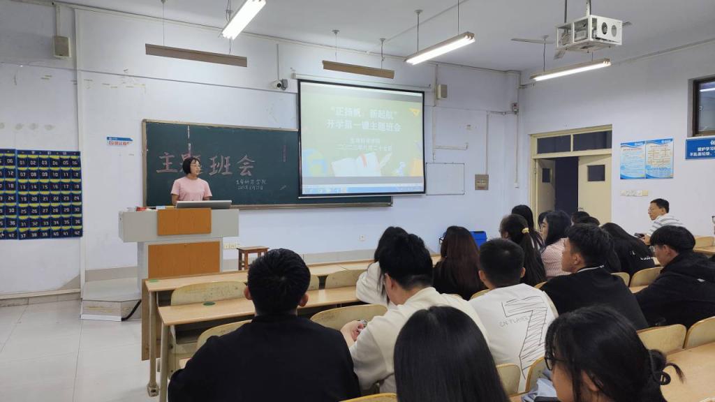 8月27日,为引导同学们做好总结反思,合理规划新学期学习生活,欧美亚州国产日韩mv天天各年级辅导员、班主任于求实楼召开“正扬帆,新起航”主题班会。我院党委领导班子成员深入班会指导。