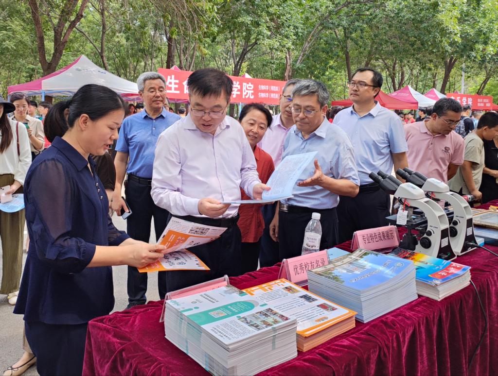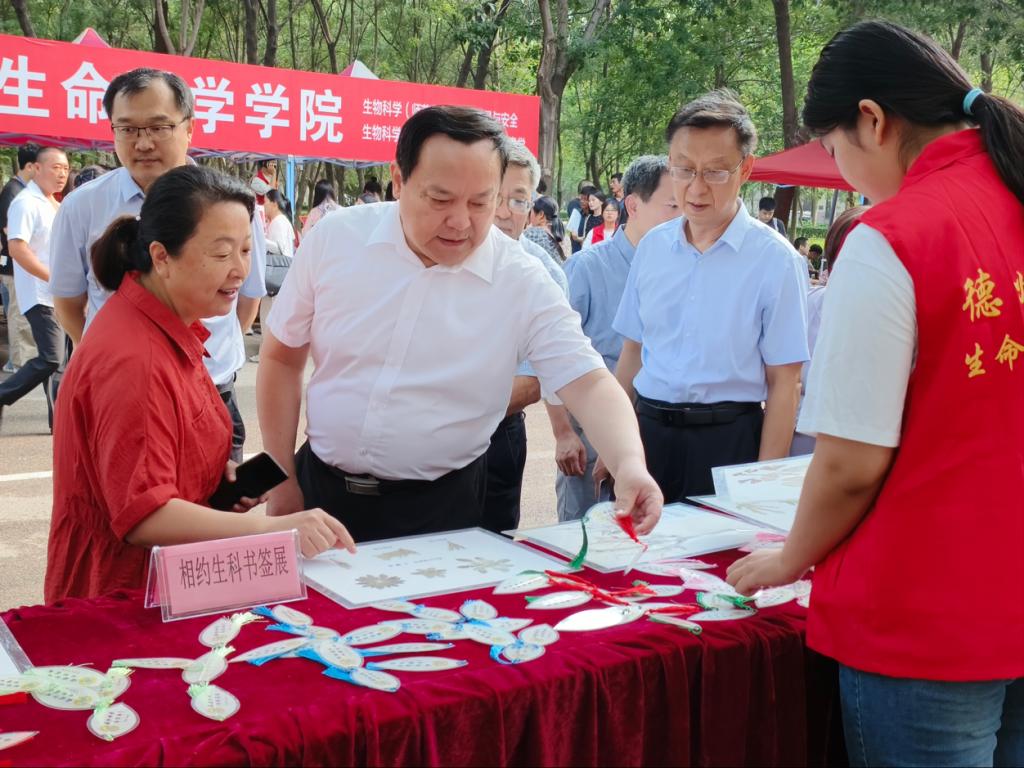 学院通过各种形式,积极宣传学科特色,增强新生的专业认同。迎新现场,学校党委领导班子成员参观了欧美亚州国产日韩mv天天专业特色展——叶脉书签、风采展板、标本、琥珀、立牌打卡区以及显微镜展示区,对生科院迎新工作给予肯定和支持。同时,学院志愿者迎新队伍,为新生和家长入校做好服务保障,详细解答新生入校报到疑问,提供全面优化服务,有效缓解新生入学的紧张和焦虑,为即将入学的新生带来学院的温暖与祝福,让新生放心、家长舒心。