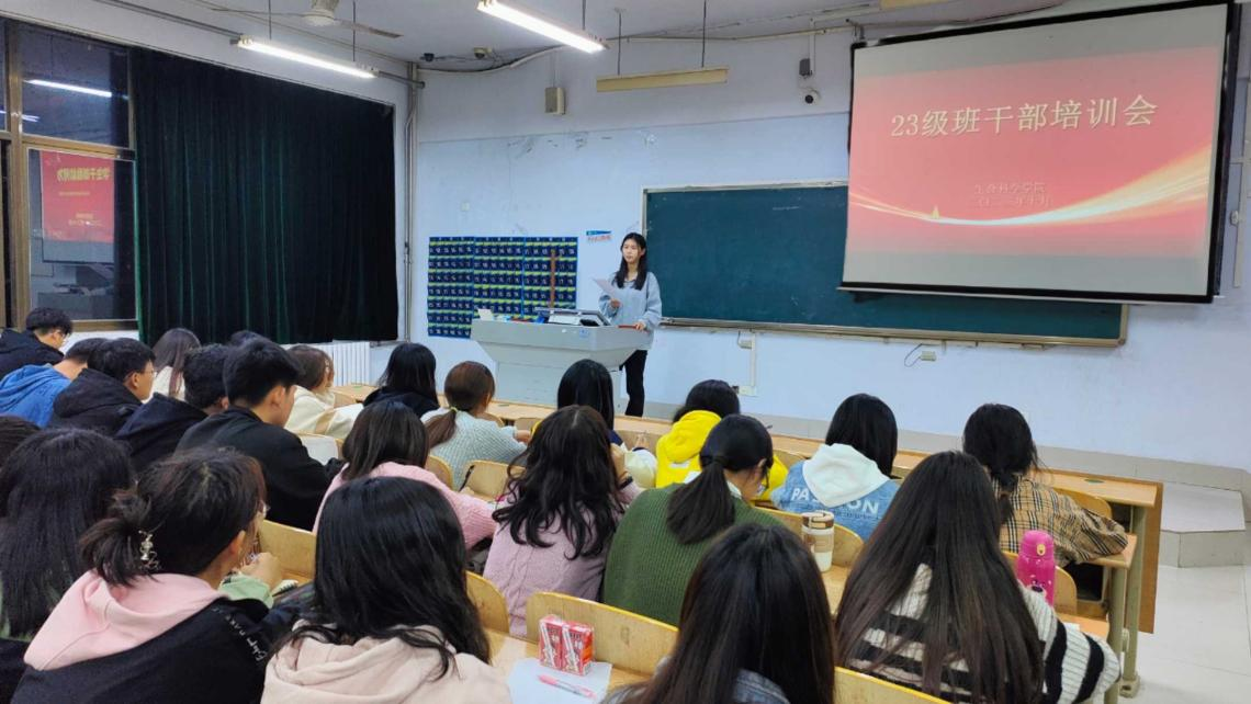 10月27日晚,为加强学院班级联系,强化班级管理,欧美亚州国产日韩mv天天于求实楼0105教室召开23级班干部培训会。