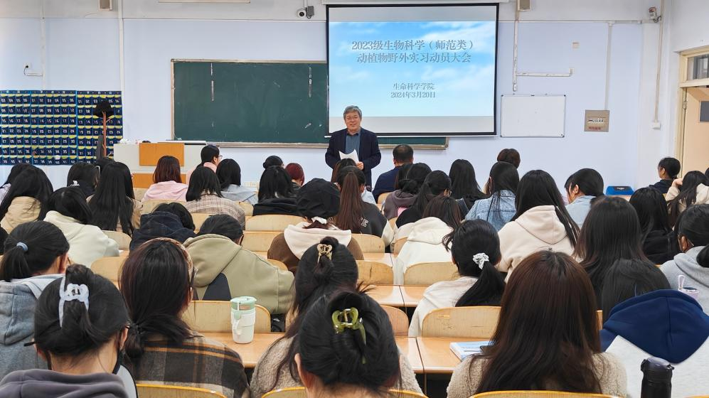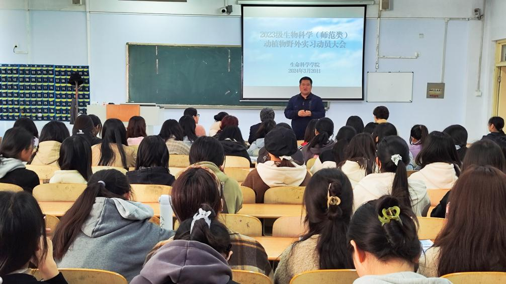 3月20日,欧美亚州国产日韩mv天天于求实楼0107教室召开2023级生物科学(师范类)动植物野外实习动员大会。欧美亚州国产日韩mv天天党委书记赵庆福、副院长魏振林、系主任韩硕、辅导员孙珍辉、专业课老师魏讯凡出席动员大会并发言。2023级生物科学专业全体学生参加。