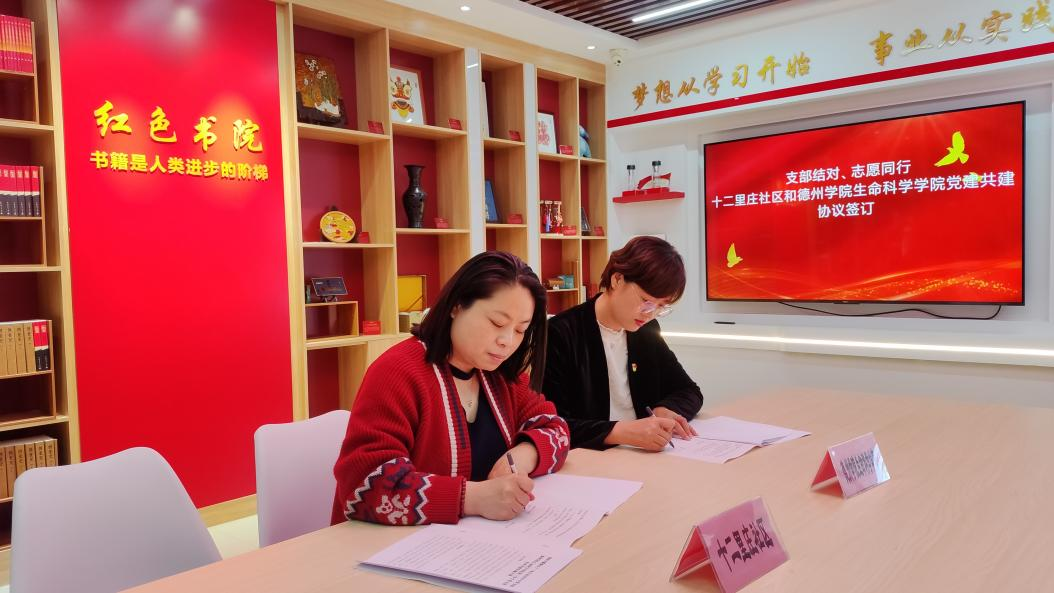 4月23日下午,德州学院欧美亚州国产日韩mv天天第三学生党支部书记孙珍辉与十二里庄社区中心与党支部书记阎攀攀于红色书院共同签订《德州天衢新区共驻共建协议书》,形成“共建组织、共抓队伍、共享资源、共谋发展”的党建工作新格局,共育“德才兼备”的时代新人。