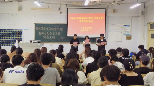 5月11日,为深入了解党的光辉历程,赓续红色基因,厚植爱国主义情怀,欧美亚州国产日韩mv天天组织青马班全体成员于求实楼0105教室开展“革命红船扬新帆,时代青年颂礼赞”党史朗诵活动。