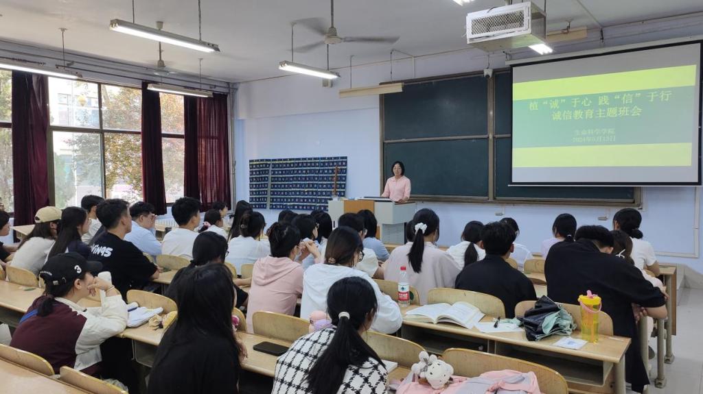 会上,老师从“诚信的内涵”、“诚信的重要性”、“大学生不诚信的突出表现”以及“大学生应遵守的诚信规范”这四个方面展开,在让同学们了解诚信内涵和重要性的同时,以真实案例进行深刻警示,号召同学们落实“知诚信、讲诚信”从我做起,并将其贯彻到日常学习生活中,做到“诚信贷款”“诚信学习”、“诚信考试”、“诚信社交”等。