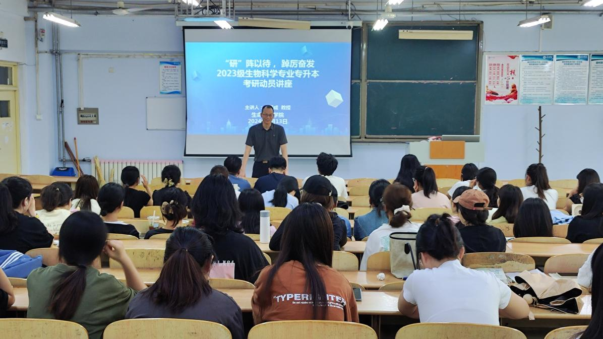 6月13日,为持续推动我院考研工作的开展、充分激发我院学生考研积极性,欧美亚州国产日韩mv天天于求实楼0111教室举办2023级生物科学专业专升本考研动员讲座,讲座由生科院院长主讲。