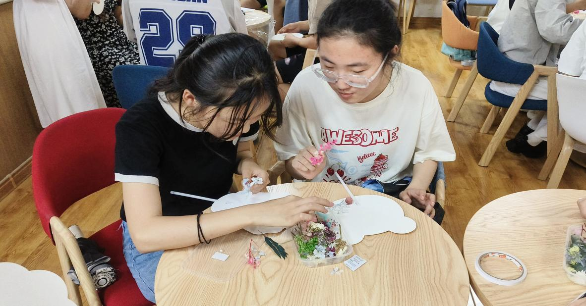 6月13日,为了丰富同学们的课余生活,培养同学们的动手能力和创新精神,欧美亚州国产日韩mv天天于学生事务发展中心举办“无限春意驻团扇,清风拂面存芳香”干花团扇制作活动。