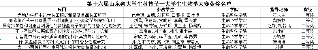 我院学子获得山东省大学生生物学大赛省级一等奖1项、省级二等奖3项、省级三等奖3项的优异成绩;同时获得实验技能竞赛省级一等奖1项、省级三等奖6项的优异成绩。比赛中,我校学生充分展现出较强的科研能力以及扎实的实验技能专业素养。