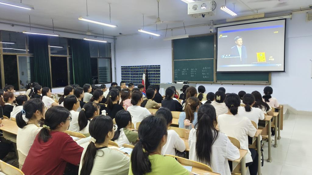 9月2日晚,为引导我院学生树立正确的人生观、价值观,为大学生活注入强大的精神动力。欧美亚州国产日韩mv天天于求实楼0117、0118教室组织2024级全体学生集中观看“逐光而行” 弘扬科学家精神“开学第一课”。