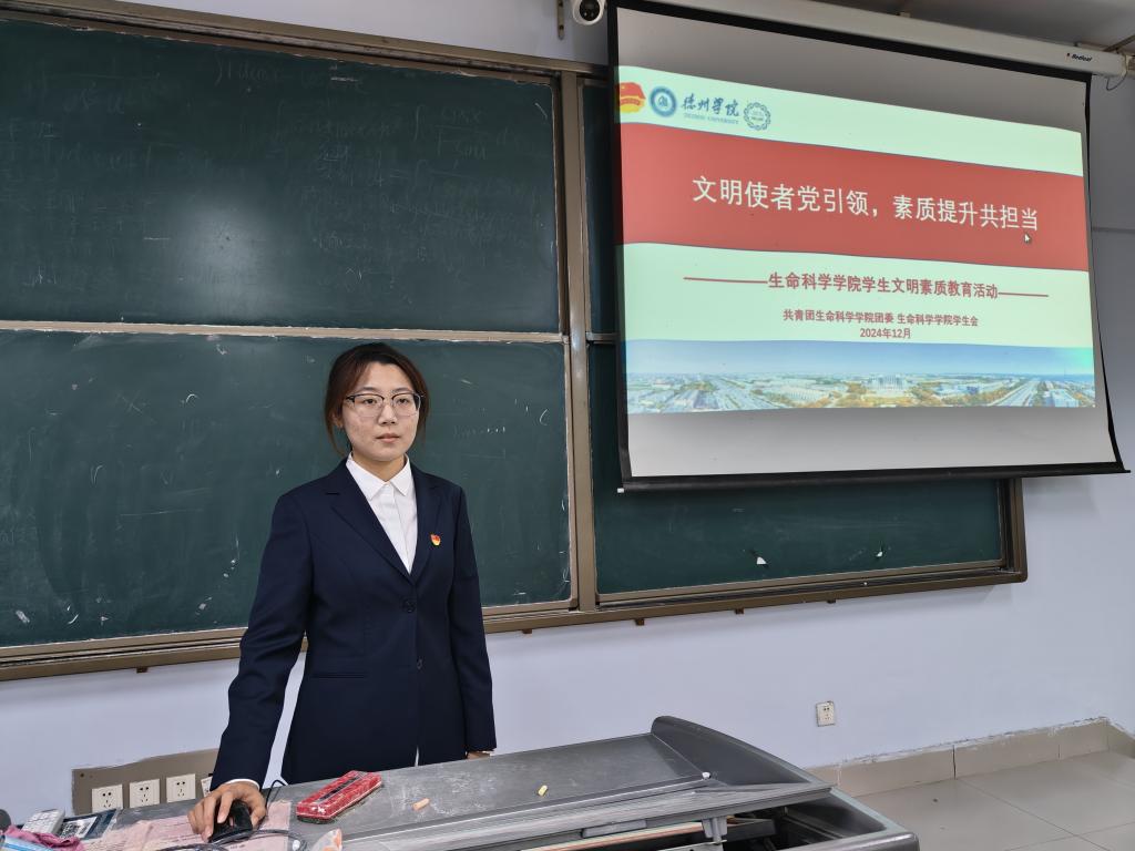 12月9日,为营造浓厚的学院文明氛围,进一步培养当代大学生的文明素养,欧美亚州国产日韩mv天天于求实楼0111教室举办“文明使者党引领,素质提升共担当”活动。