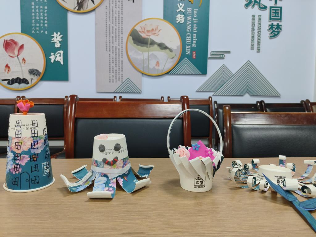 活动现场,主讲人从生态破坏、资源浪费等角度深入剖析了废品不当弃置的危害性,并通过生动的案例和详实的数据,使同学们深刻认识到环境保护的紧迫性和重要性。同学们纷纷动手,将废弃物品巧妙改造成实用的手工艺品。同学们的作品形式新颖,各具特色。不仅有废弃一次性纸杯做的笔筒,还创新性的用废卡纸做出漂亮的小花篮等。在活动过程中,同学们积极沟通交流,分工明确,一件件废品在同学们的巧手下“重获新生”。学生们纷纷表示将以此次活动为契机,进一步增强环保意识,养成文明习惯,为构建美丽文明的校园环境贡献自己的力量。
