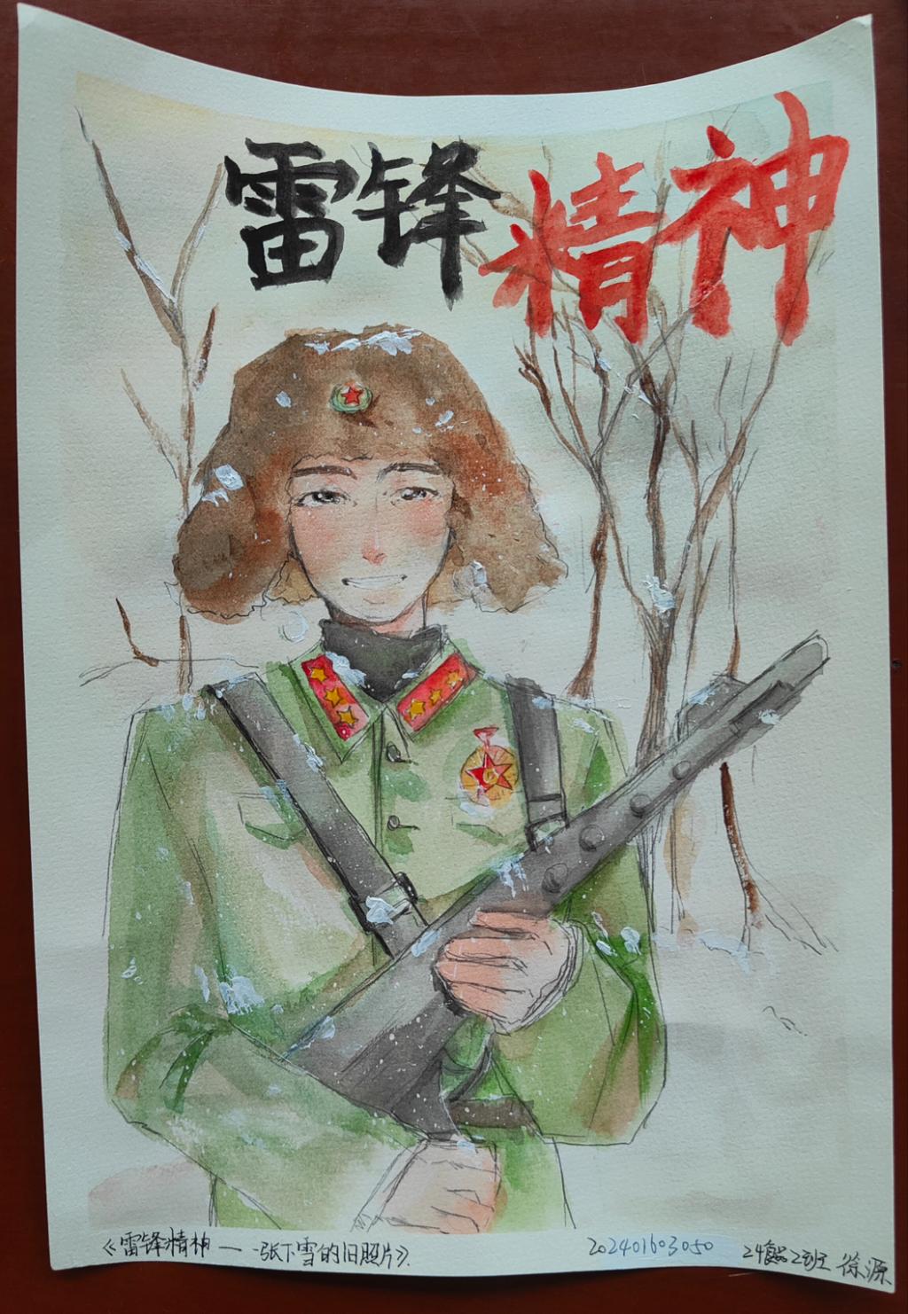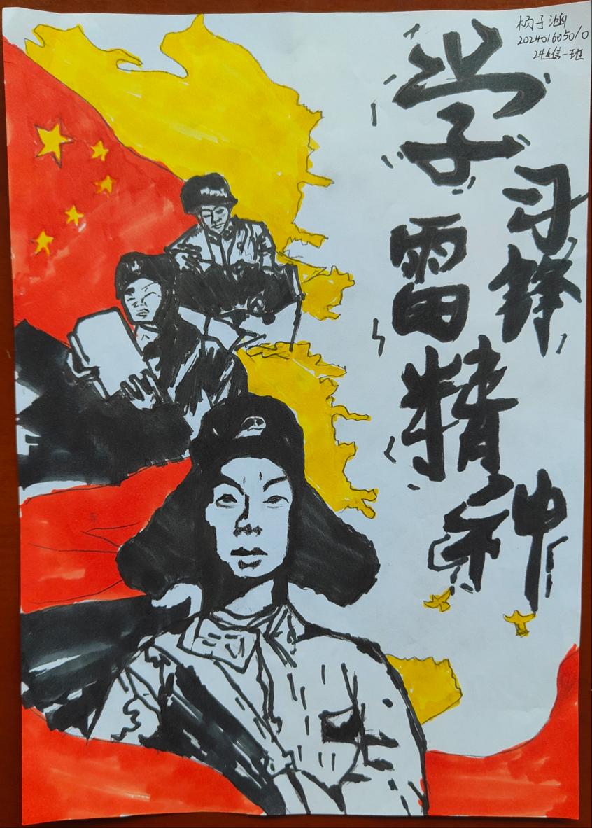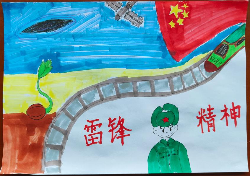 活动期间,同学们踊跃参与,紧扣雷锋生平与精神内核,借绘画抒发对雷锋精神的独到理解与传承决心。众多作品中,写实画作以细腻笔触,生动还原雷锋修车、站岗的场景,重现他坚毅热忱的形象;创意画作则用丰富色彩与大胆想象,展现志愿服务、爱心帮扶等社会生活片段,彰显雷锋精神在新时代的蓬勃生命力。