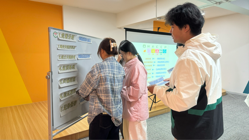 诚信科研的HACCP体系”环节,引入食品行业H(学生们观看食品安全检测中心视频)ACCP概念,并展示《诚信科研的HACCP流程图》,将学术行为风险点与食品行业问题生动类比,如将不抄袭作业类比为原料不掺假、数据造假类比为篡改保质期等,化抽象为具体,助力同学们透彻理解诚信在科研工作中的关键意义,有效筑牢科研诚信认知基础。