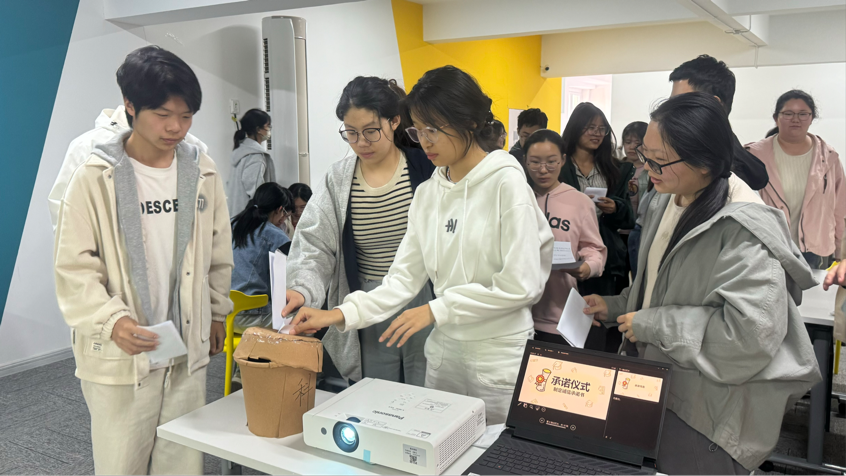 班会最后,全体学生参与承诺仪式。每位同学结合自身实际,在便签纸上写下在学习和科研项目中践行诚信的具体行动,制作成个人诚信承诺书,并封入“科研守诺罐”,约定毕业时启封对照成长。