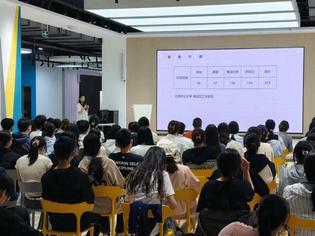 4月25日,为营造积极向上的学习氛围,借助朋辈的正向带动,让学生们对考研有更清晰的认识和规划,我院于德州学院东校区创业就业赋能中心成功举办了一场考研经验分享会。学院特邀21级食品质量与安全专业三位成功上岸的优秀学生潘诺、王洪斌、张海玲为即将踏上考研征程的22级同学传经送宝。