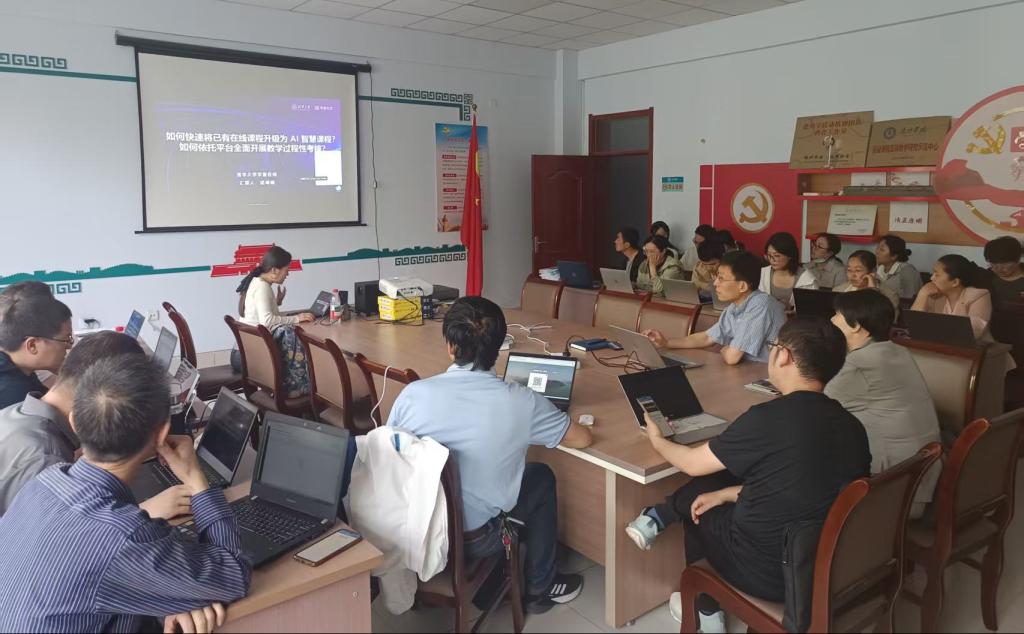 培训伊始,主讲专家深入剖析了AI技术在教育领域的应用趋势,强调将AI融入在线课程的重要性和迫切性。在“如何快速将已有在线课程升级为AI智慧课程”环节,专家详细介绍了长江雨课堂平台中AI功能模块,如智能学情分析、AI讲伴、AI 辅助备课等。通过实际案例演示,展示了如何利用这些功能,将传统的静态课程资源转化为具有交互性、智能性的动态学习内容。