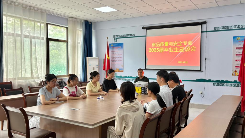 为深入了解教学成果,倾听毕业生心声,优化人才培养方案,进一步提升食品质量安全专业教学质量,欧美亚州国产日韩mv天天于5月22日在求实楼204会议室开展食品质量与安全专业 2025 届毕业生座谈会,本次座谈会由食品质量与安全专业负责人主持。