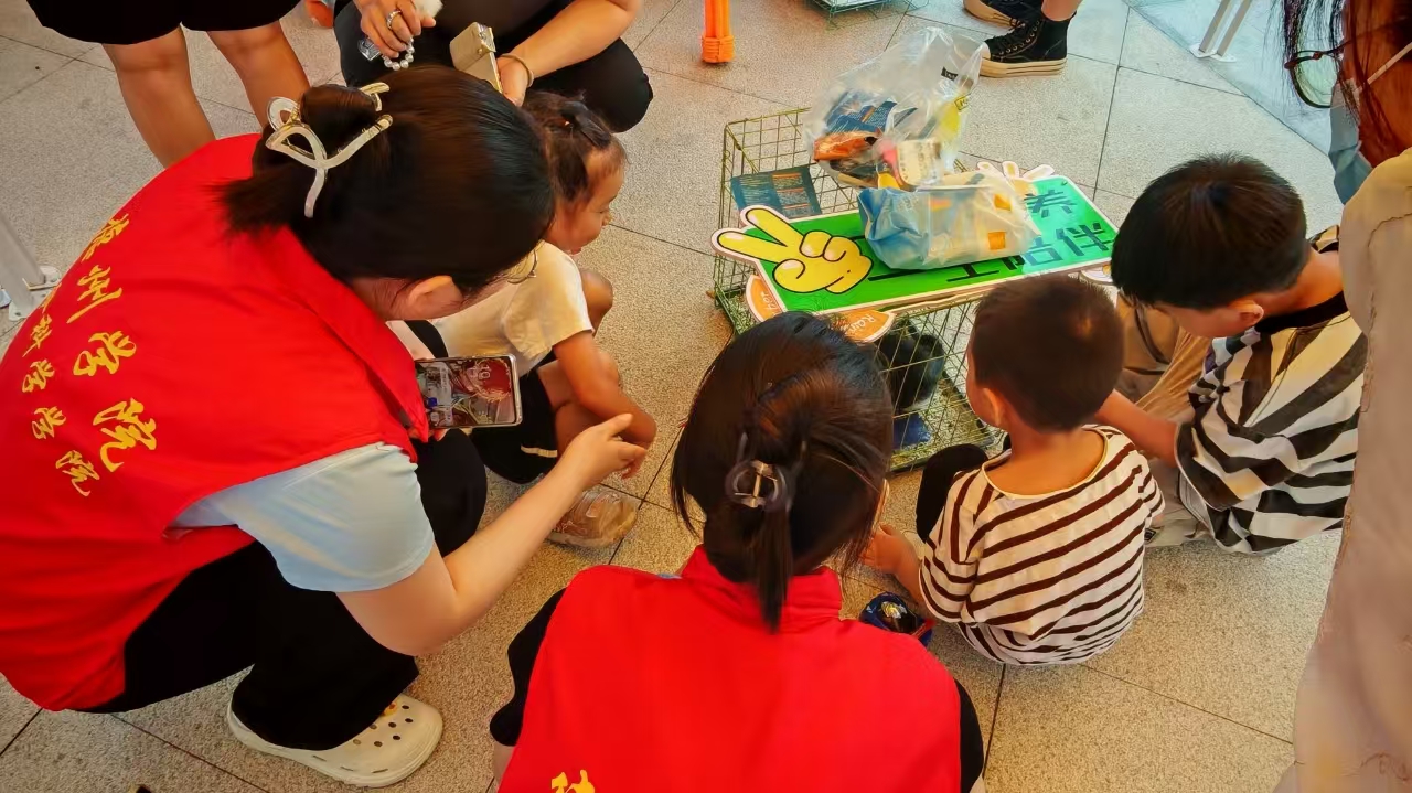 (志愿者陪同小朋友观宠)