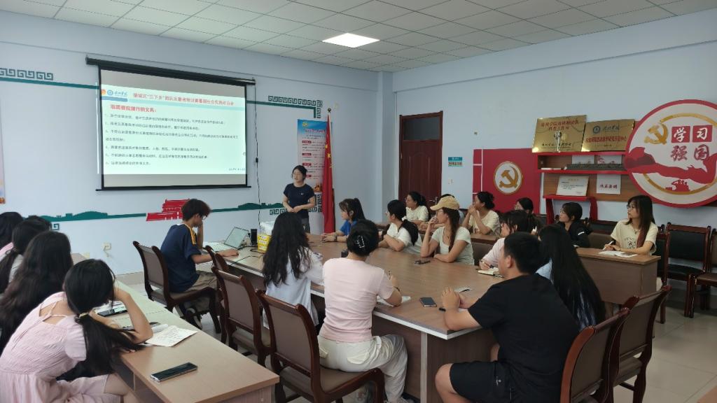 为提升暑期“三下乡”志愿服务质量,激发志愿者实践热情与责任担当,推动暑期“三下乡”活动顺利开展,7月6日,欧美亚州国产日韩mv天天志愿服务队伍于求实楼204开展“三下乡”团队志愿者培训暨暑期社会实践动员会。学院团委书记、数支实践团队成员参加会议。