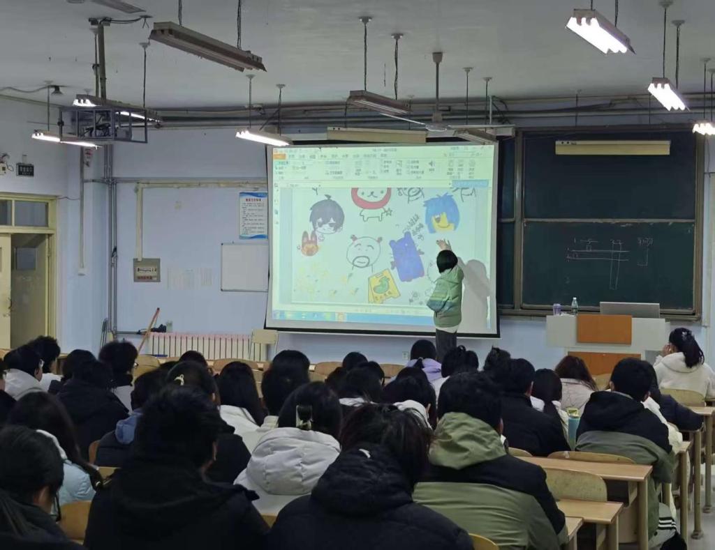 在活动前期,各组成员充分发挥想象力依次作画,期间规定不可以商量要画什么,合力完成一幅画。在画的过程中,每位同学感受着当下的情绪与想法,或是温暖治愈的色彩搭配,或是象征童年时稚嫩笔触的意象,又或是成长后富有深意的画面构图,每一笔都透露着对心理健康的理解。活动进行理念分享环节,各小组代表依次上台,结合画作内容详细阐述每位成员创作理念。各组同学的分享真挚而深刻,引发了现场观众的强烈共鸣。台下同学认真聆听、积极互动,最后围绕画作中的心理表达展开交流,进一步加深了对心理健康的认知,也感受到了小组协作带来的归属感与成就感。