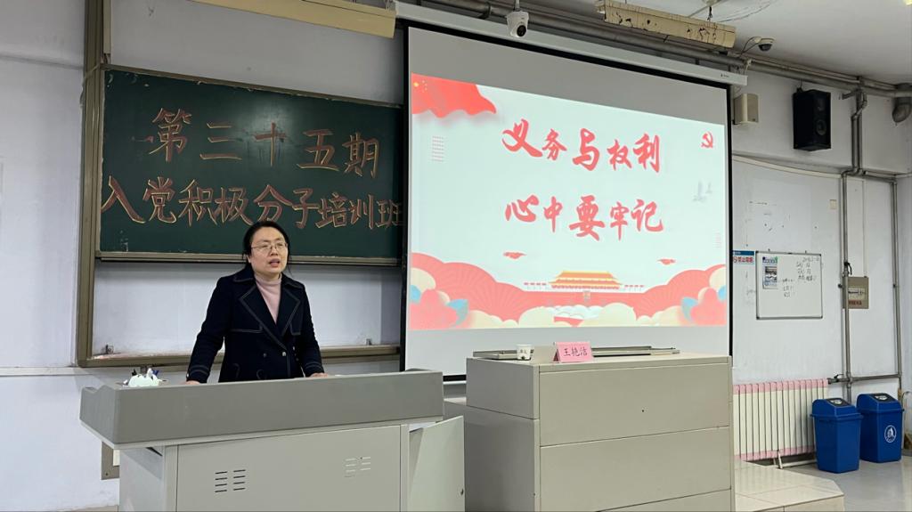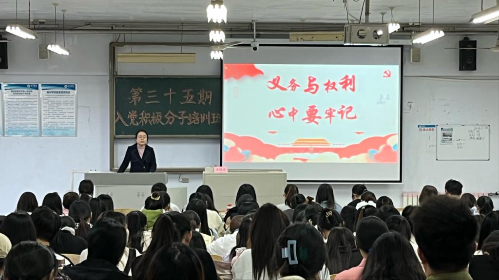 2023年4月19日,为加强入党积极分子的党性修养,进一步明确党员的义务与权利,欧美亚州国产日韩mv天天团委书记、党委委员王艳洁同志于求实楼0112教室作“义务与权利,心中要牢记”主题党课讲座。参训学员共127名。